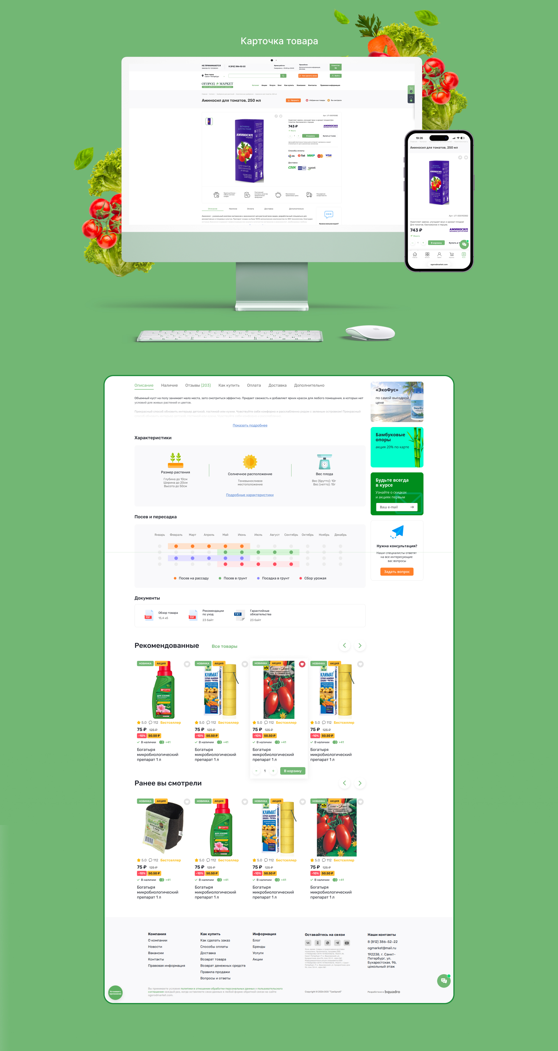 В дальнейшем клиент планирует развивать проект: подключать новые службы доставки, расширять логику сезонных товаров, запускать раздел с отзывами и внедрять другие улучшения.