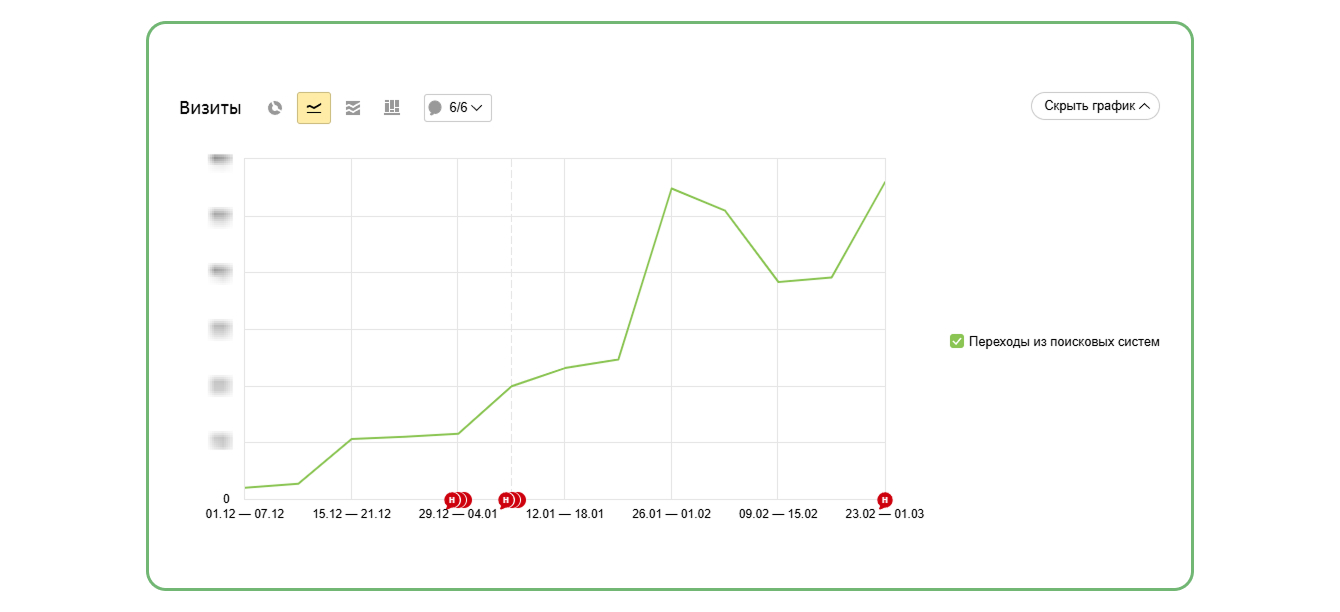 Релиз сайта состоялся в декабре 2025 года. Уже на старте проект показал хорошие поведенческие и поисковые показатели: растёт трафик, сохраняется достойная глубина просмотра и низкий уровень отказов. Такой результат удалось получить без дополнительной SEO-оптимизации — за счёт базовой подготовки к релизу и тщательной проработки структуры и пользовательской логики на этапе разработки.
