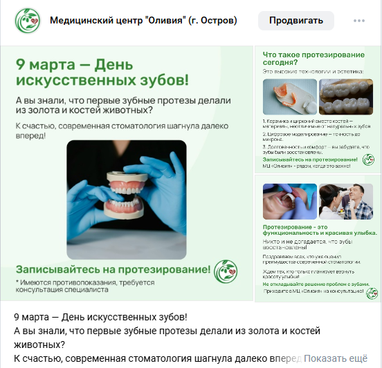 - форматы, вызывающие отклик («до/после», ответы на частые вопросы, короткие видео с врачом),