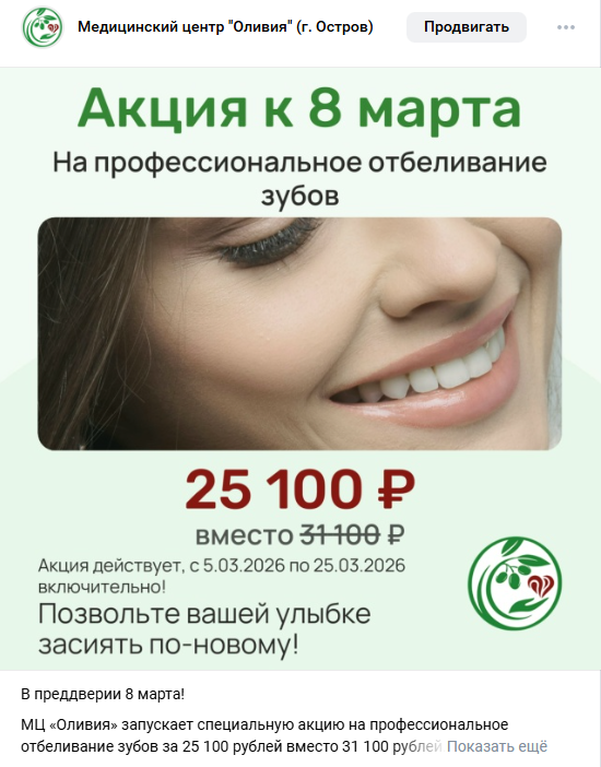Мы высоко ценим Ваш профессиональный подход к задачам интернет-маркетинга. В ходе совместной работы специалистами «Виарсе» была проведена масштабная работа по формированию качественного контента и комплексному продвижению официальной страницы ООО «Современная медицина» в социальной сети ВКонтакте.