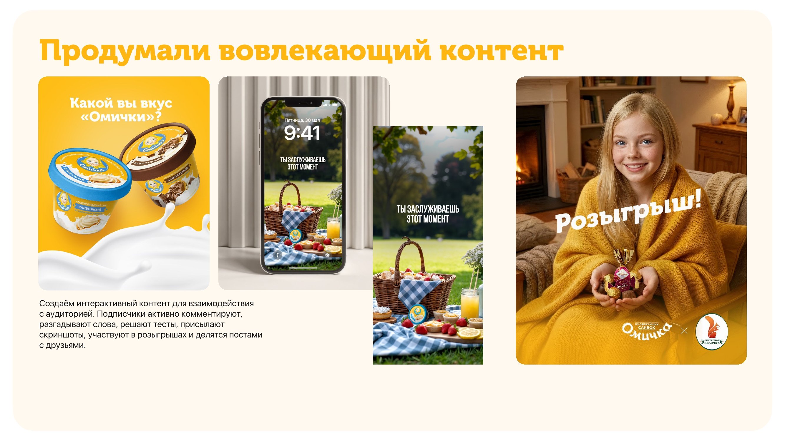 • Сформировать у подписчиков отношение к ТМ «Омичка» как бренду с историей и продукту высокого и стабильного качества (настоящая «Омичка» родом из Омска).