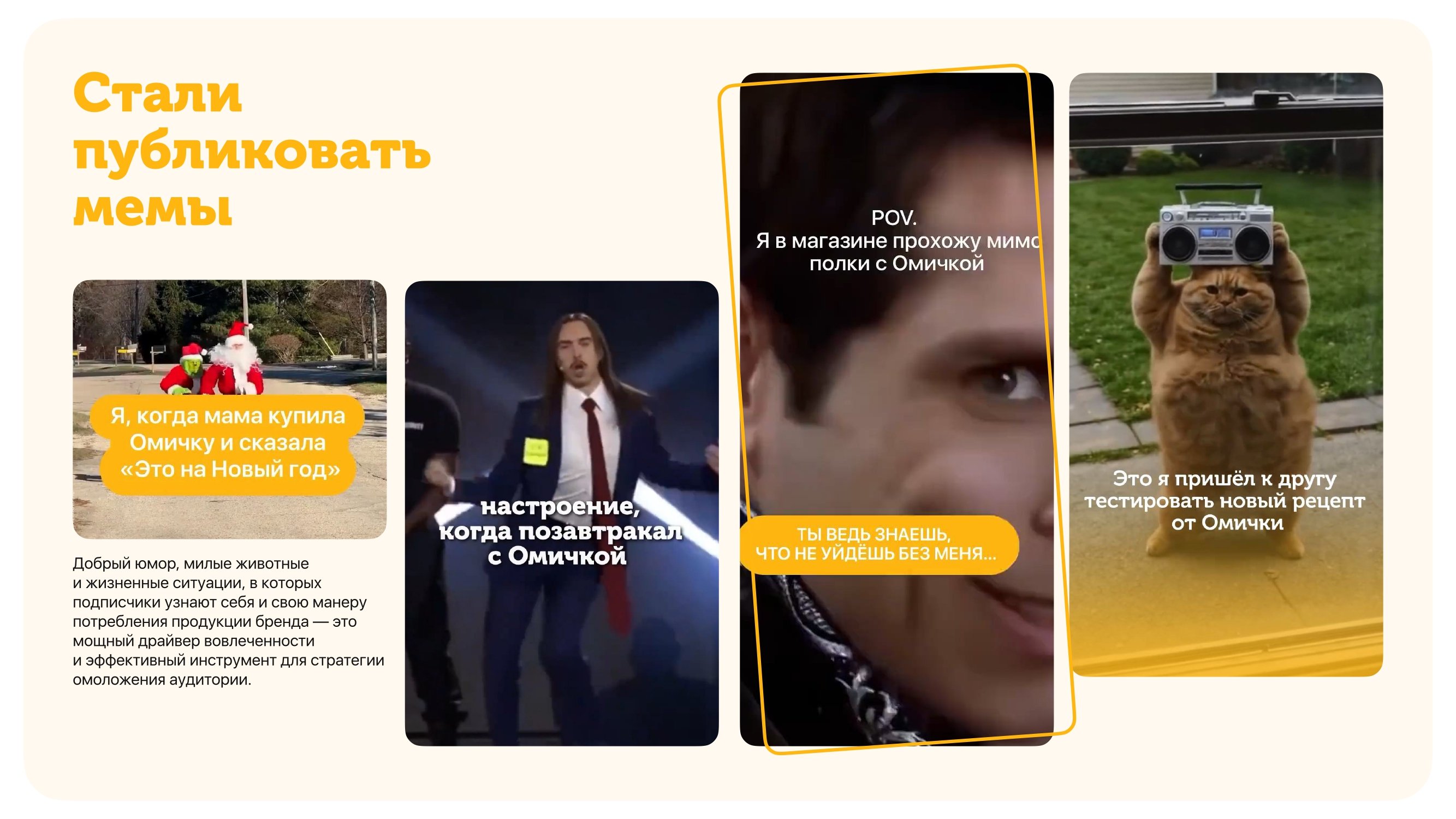 • Расширить знание и варианты потребления продукта среди подписчиков (различные способы употребления, блюда с «Омичкой» и пр.).
