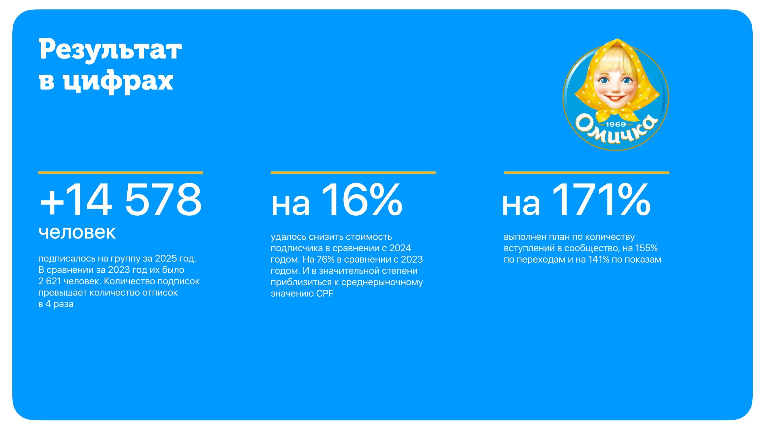 Очень хочется поблагодарить команду Be Brand People за работу в области SMM-продвижения нашего флагманского бренда «Омичка».