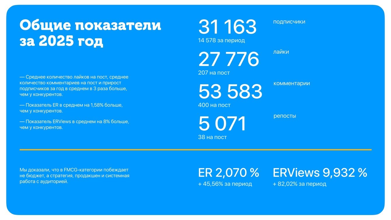 Важным фактором для нас было, чтобы команда понимала атмосферу бренда, прониклась заложенной в него теплотой и разделяла нашу безграничную любовь к нему. При этом мы ставили задачи по омоложению аудитории сообществ и амбициозные цели по KPI. Это точно не про формальный подход. Приятно видеть, как они гибко подходят к задачам, подстраиваясь под наши пожелания и быстро реагируя на изменения.