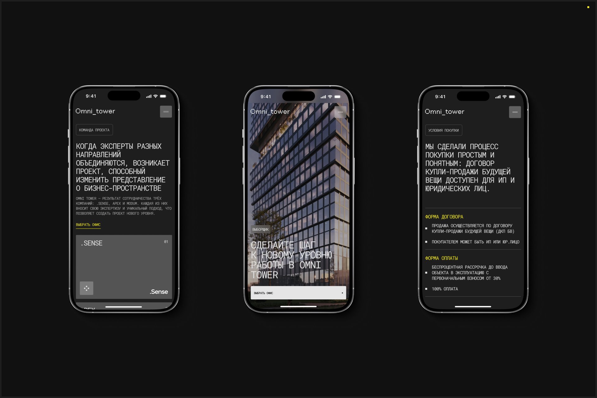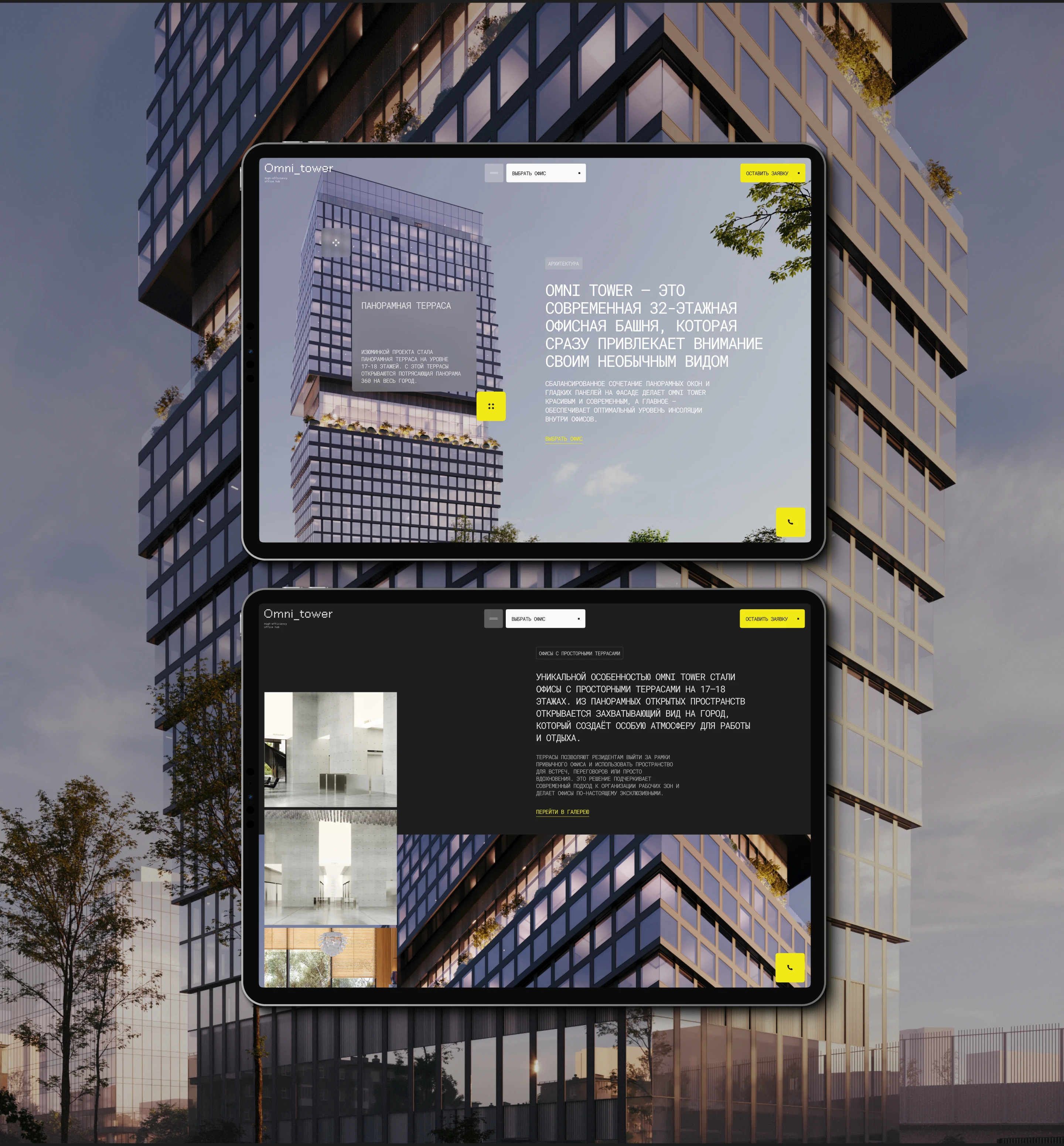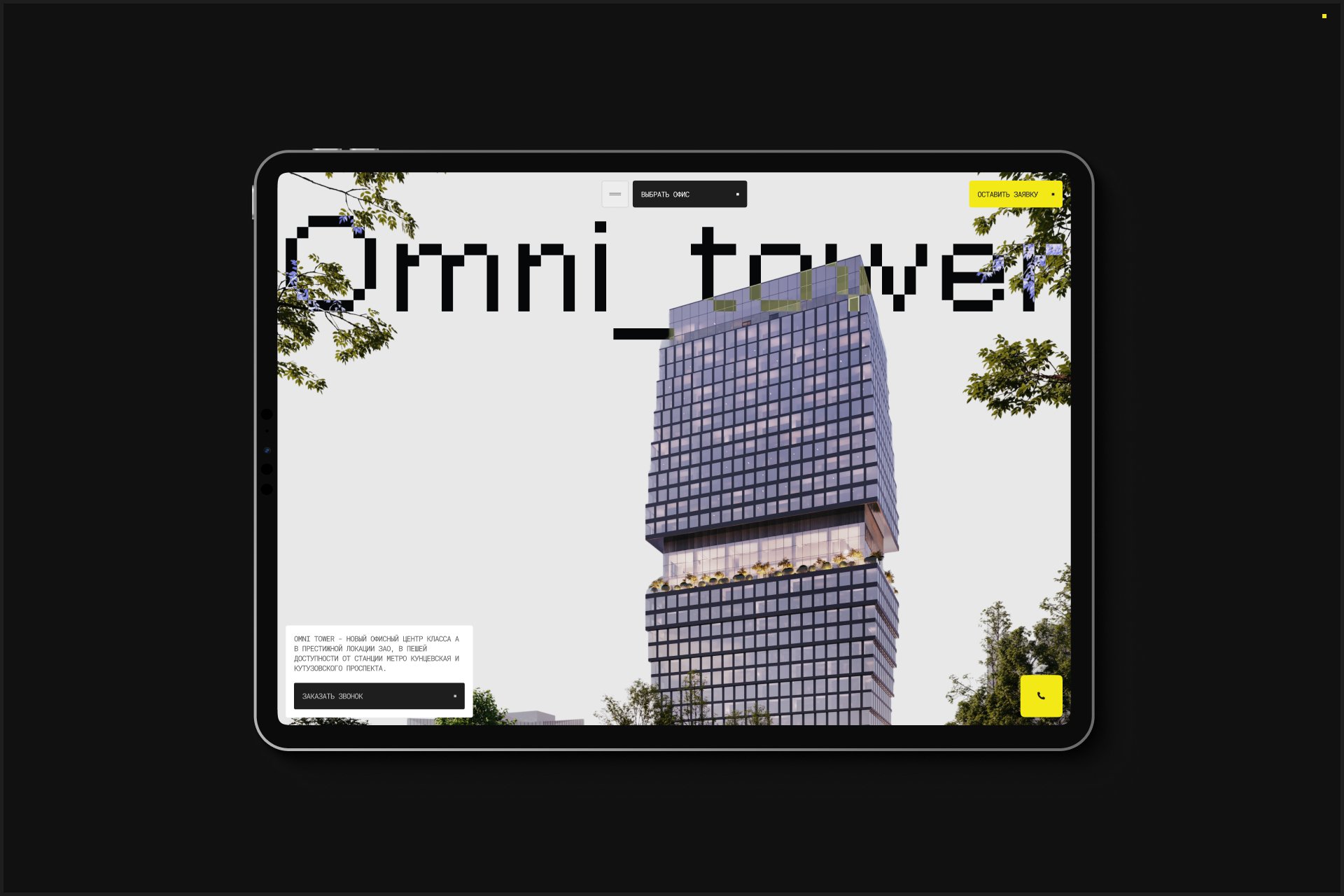 Создать промо-сайт для современного БЦ «Omni Tower» от застройщика .Sense.