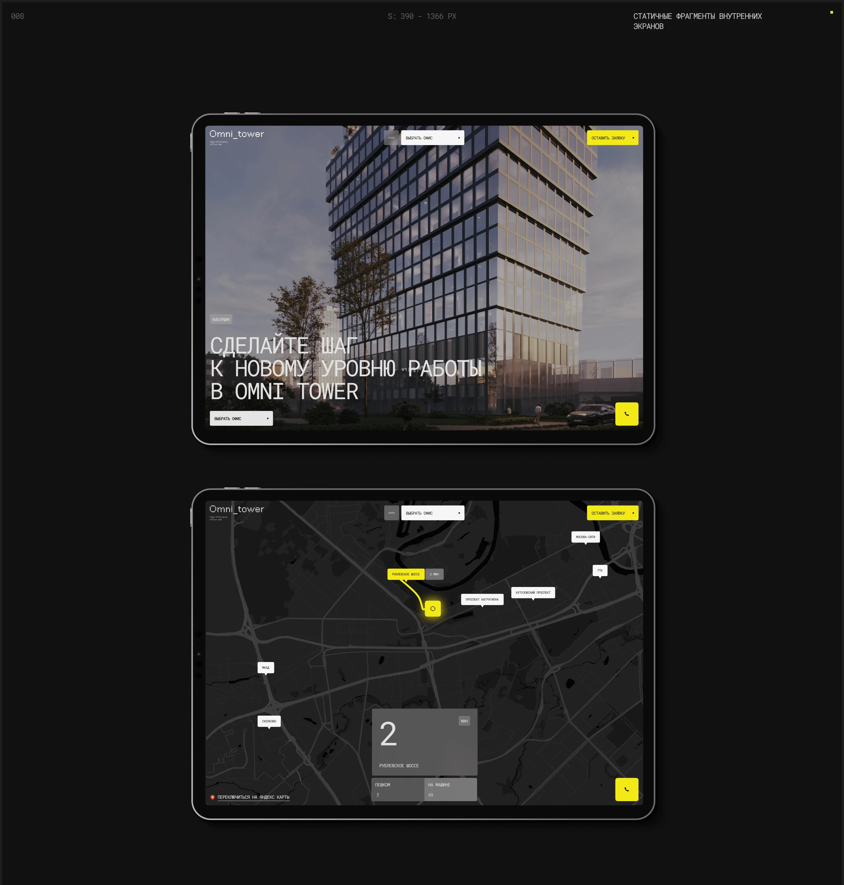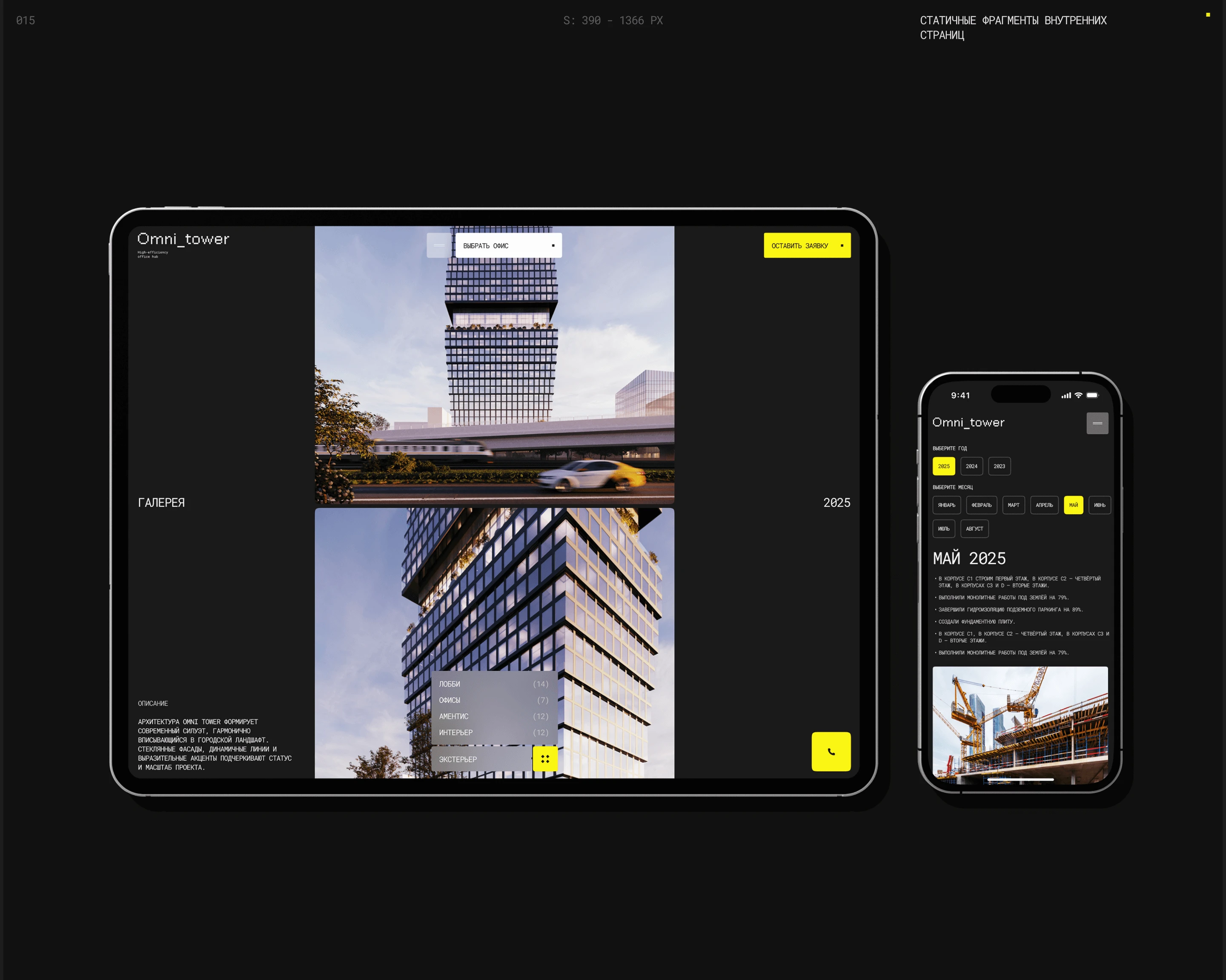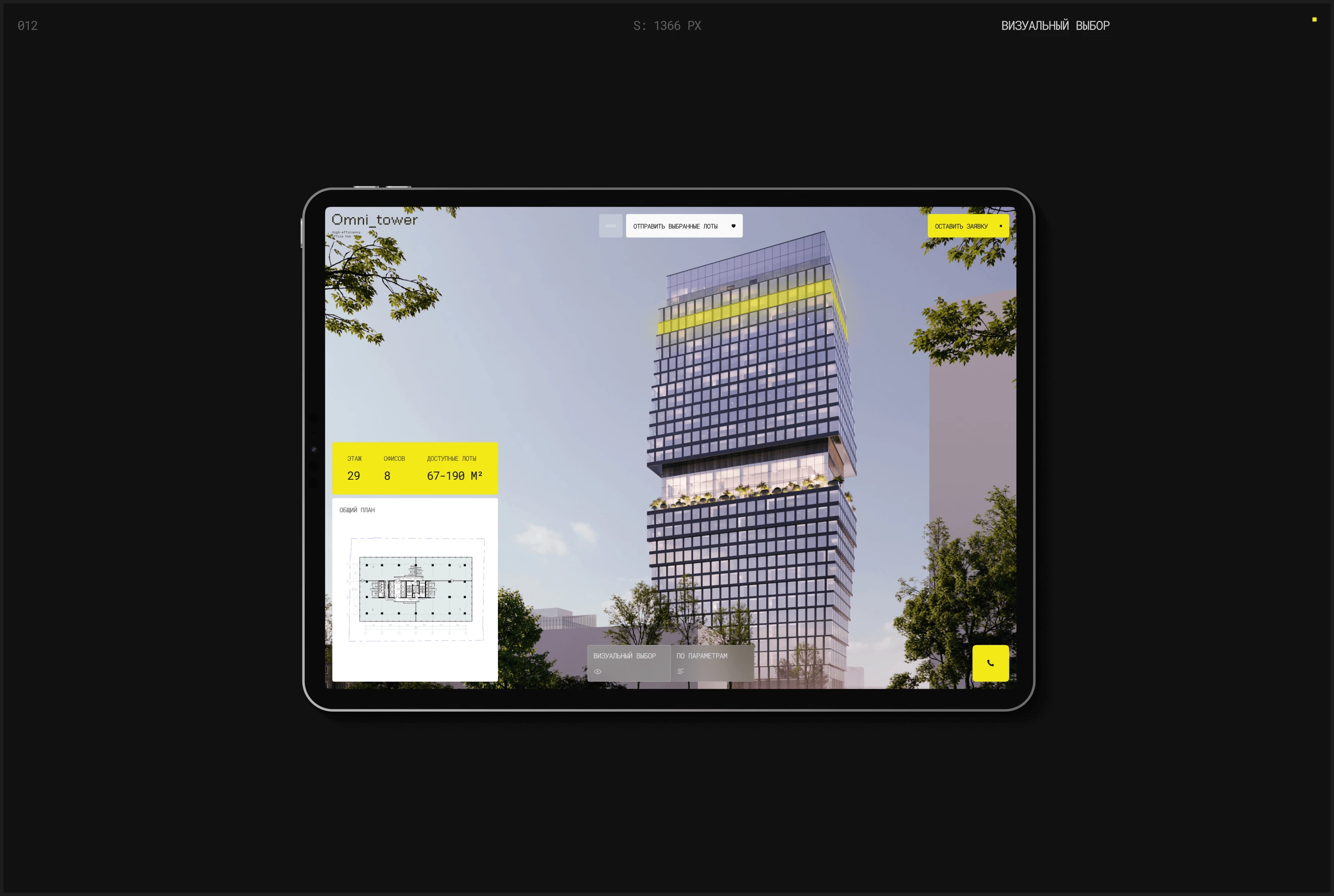 Создать промо-сайт для современного БЦ «Omni Tower» от застройщика .Sense.