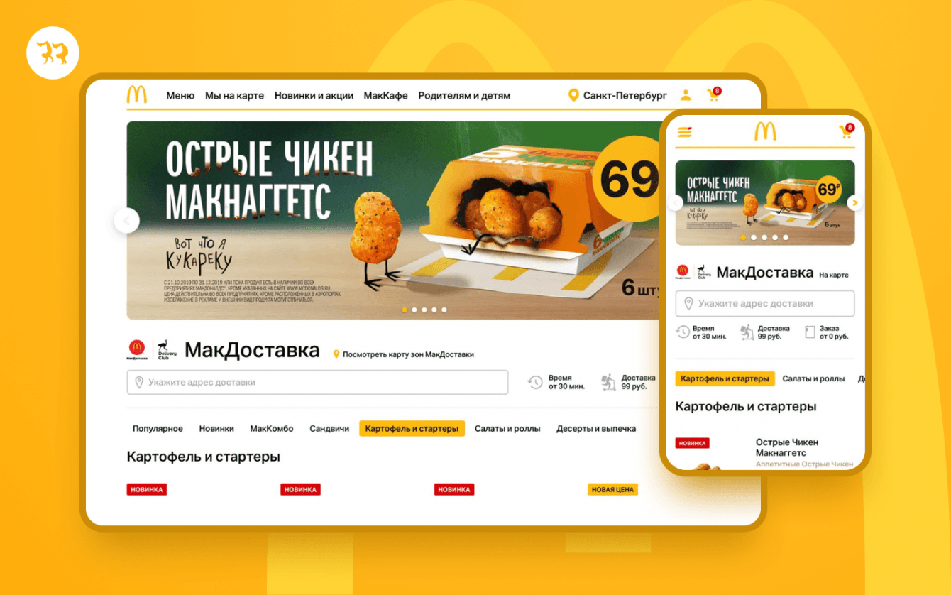 Долгое время купить бургеры и картофель фри можно было только в офлайн-точках сети или в приложениях-агрегаторах доставки еды. Официальный сайт работал как визитка — без функций «выбрать» и «оплатить заказ». Не было возможности заказать доставку напрямую с сайта.