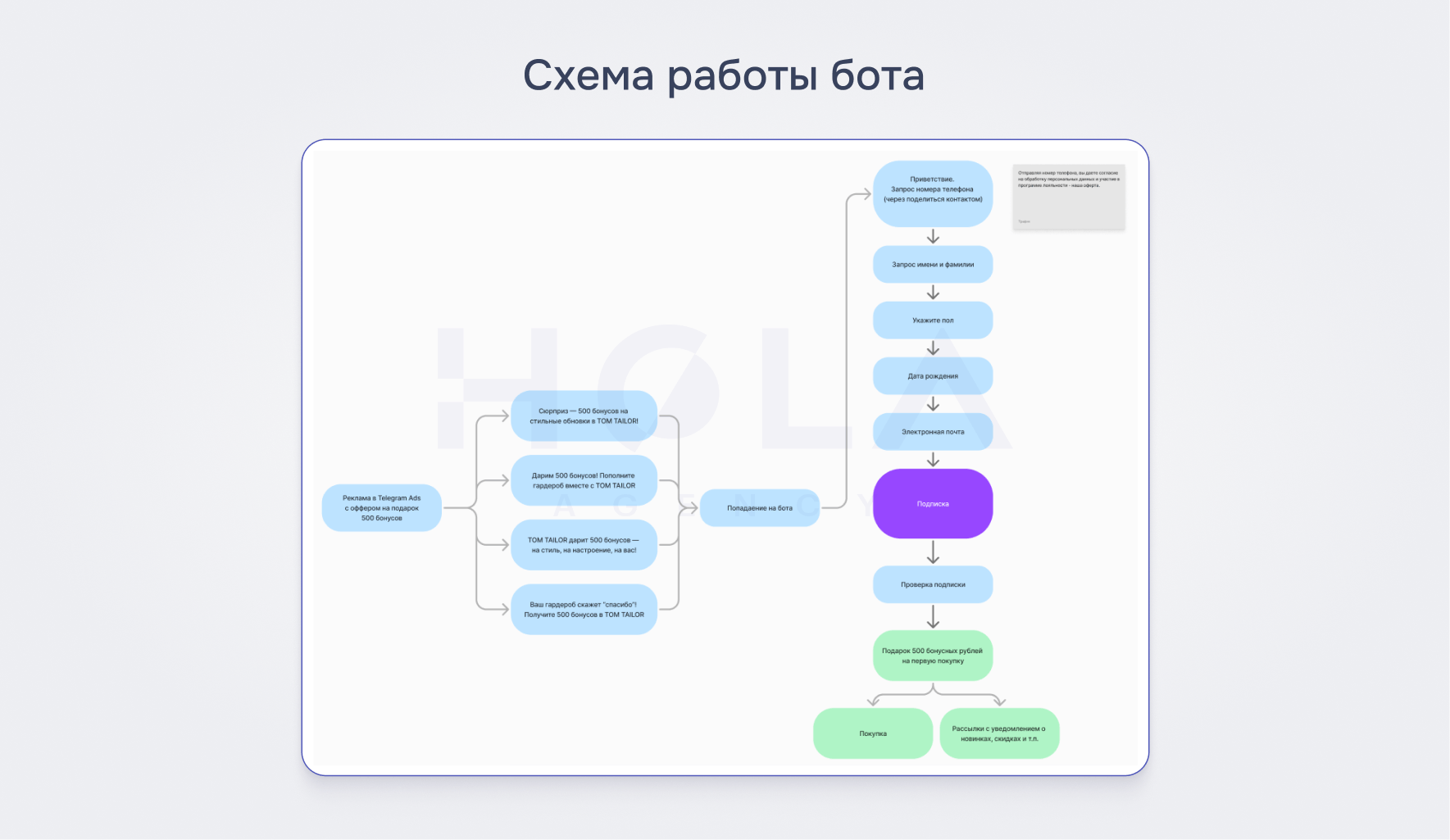 Таким образом, бот стал не просто точкой входа, а инструментом, интегрированным в общую стратегию удержания и роста ценности клиента. Он обеспечивает плавный переход пользователя от первого касания к устойчивому взаимодействию с брендом.