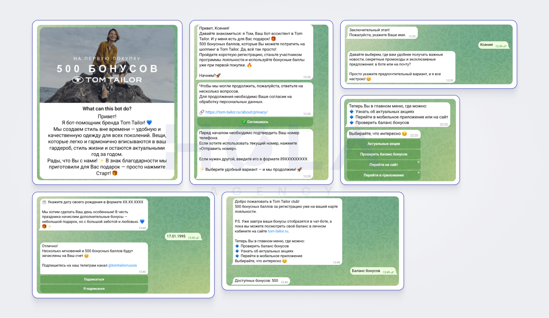 Подготовлены сценарии регулярных рассылок: подборки образов, сезонные рекомендации, напоминания о накопленных бонусах, персонализированные предложения.