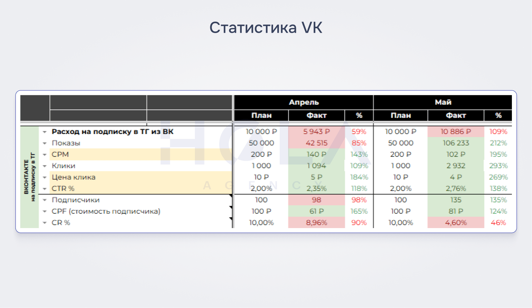 Снижение стоимости подписчика на 20% — с 120 ₽ до 101 ₽. Работа продолжается, целевой показатель: 85 ₽;