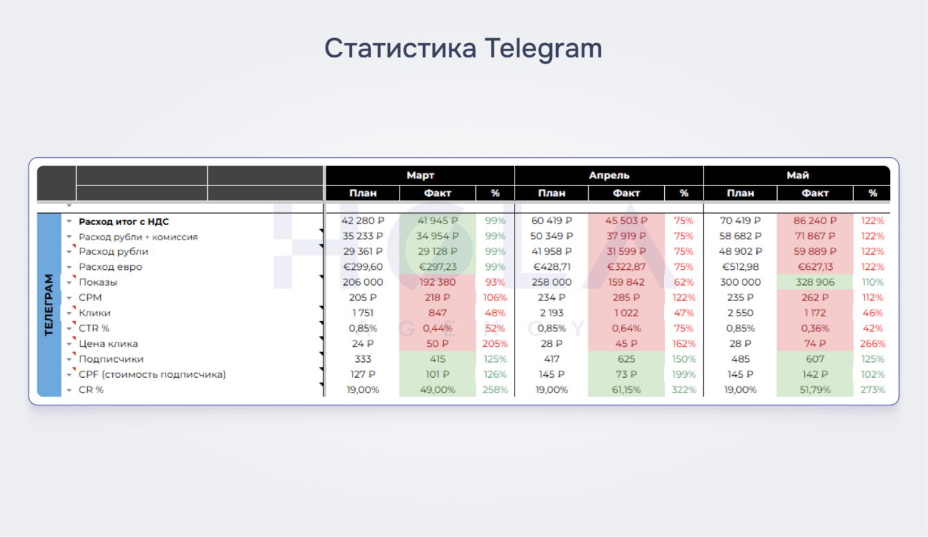 Вся аналитика проекта отражена в подробных таблицах, которые мы ведём на ежедневной основе.