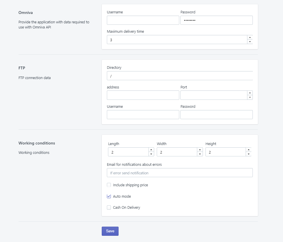 Создать Shopify приложение службы доставки Omniva, позволяющее рассчитывать