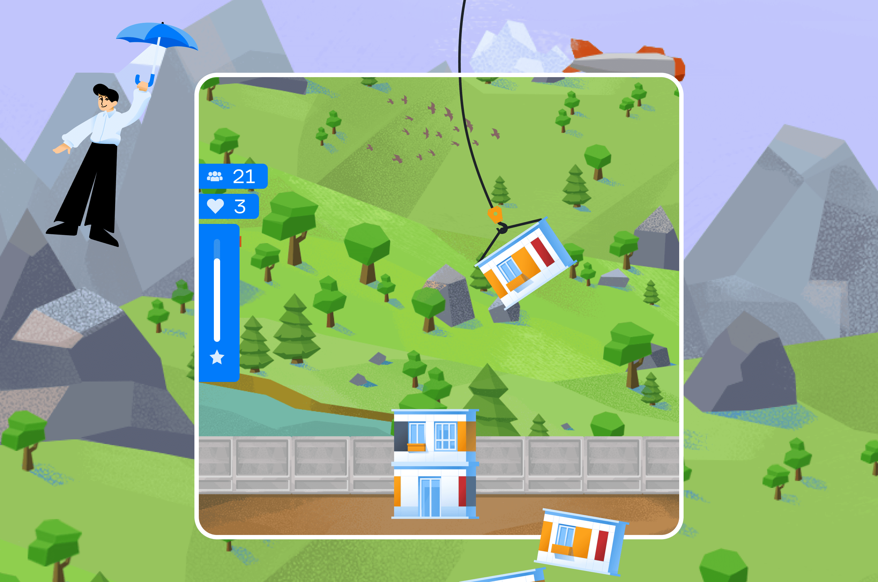 — Игра «Строй-ка». Добавили мини-игру в твою игру, чтобы ты мог играть, пока играешь в игру. Взяли всеми любимую механику Tower Bloxx и стилизовали под «Самолет»