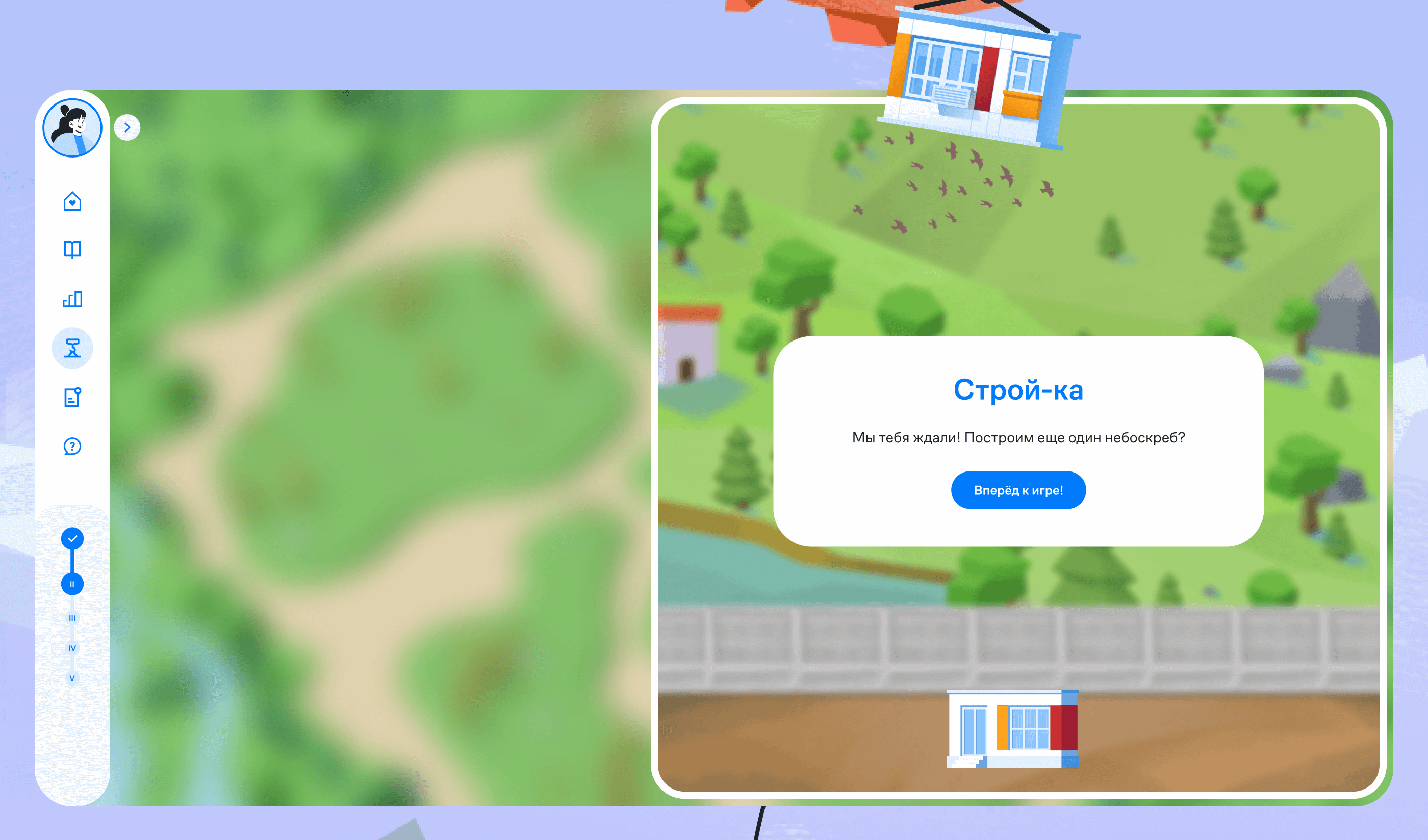 — Карта района. В течение игры пользователь построит небольшой город, каждое задание отображается на этапе строительства