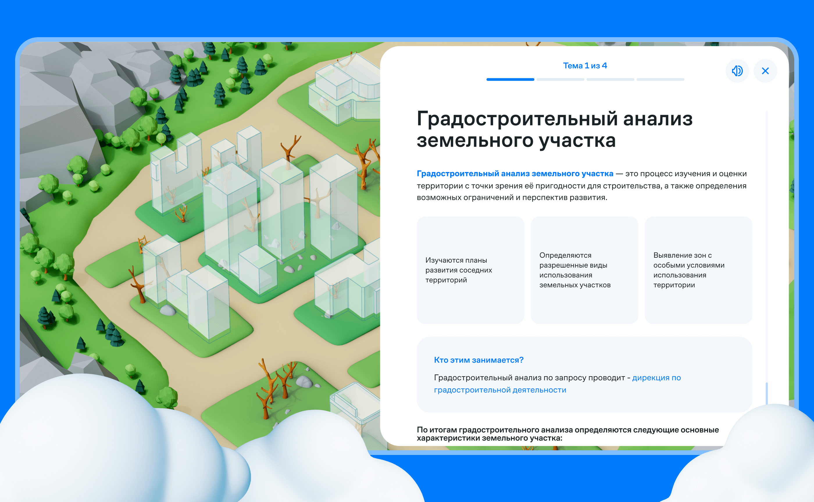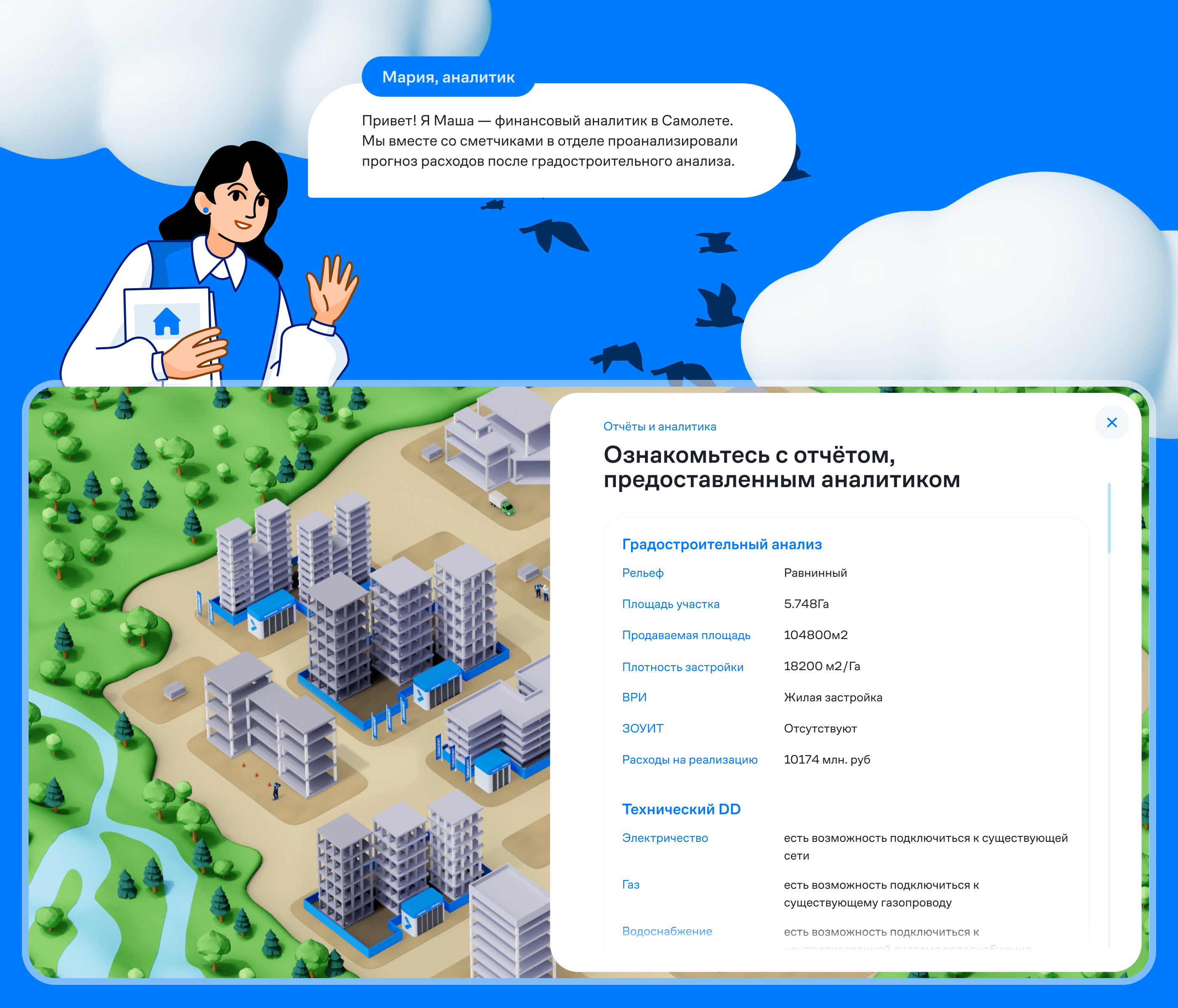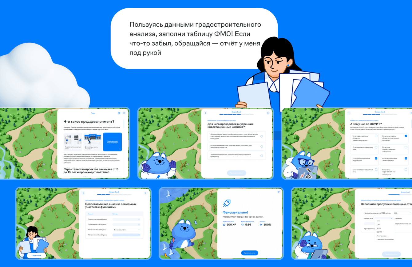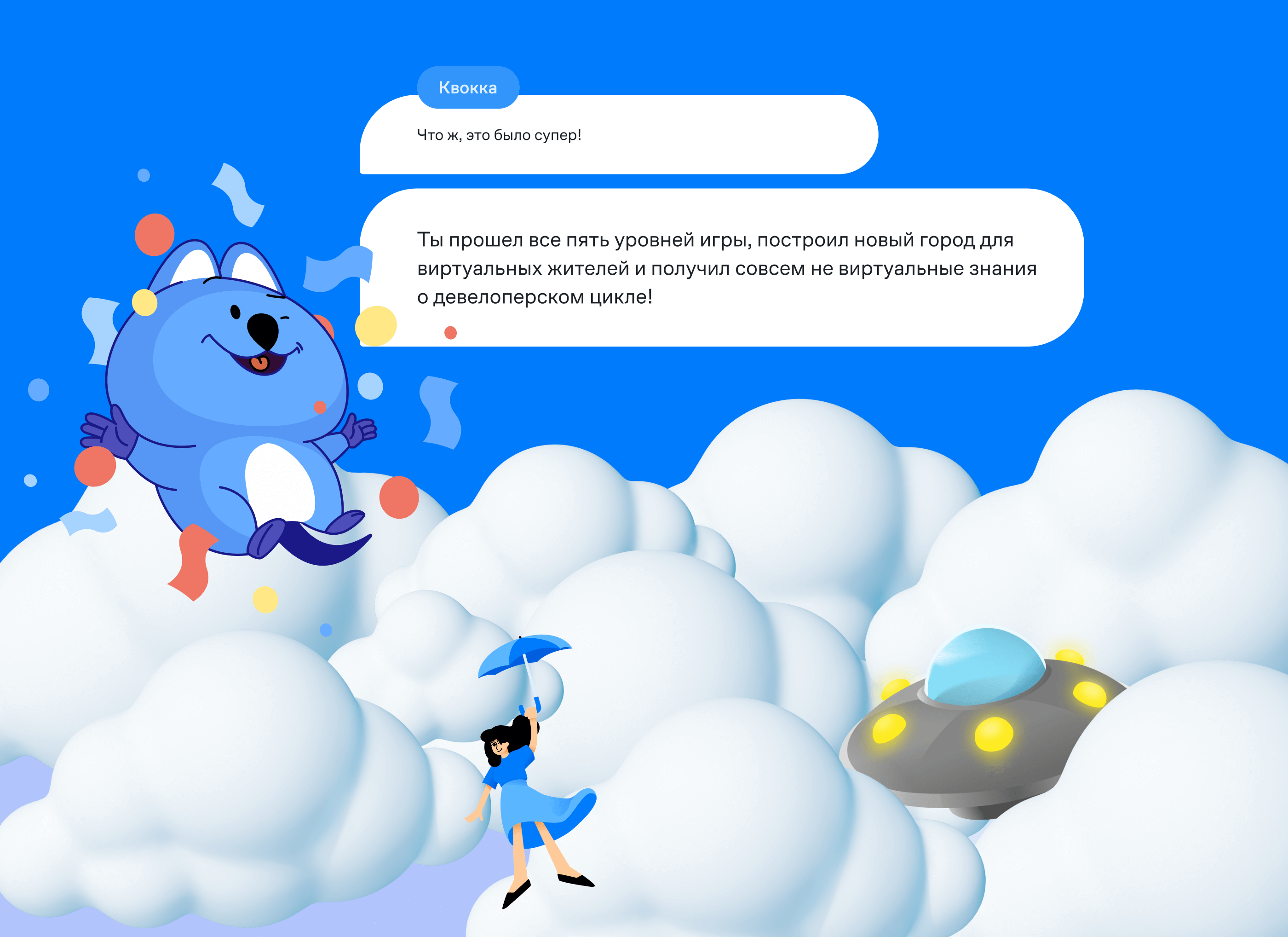 Градостроительный симулятор в стиле визуальной новеллы и обучающими механиками, в котором пользователь становится помощником руководителя проекта и вместе с тотемным зверьком «Самолета» — Квоккой, изучает процесс девелопмента с нуля