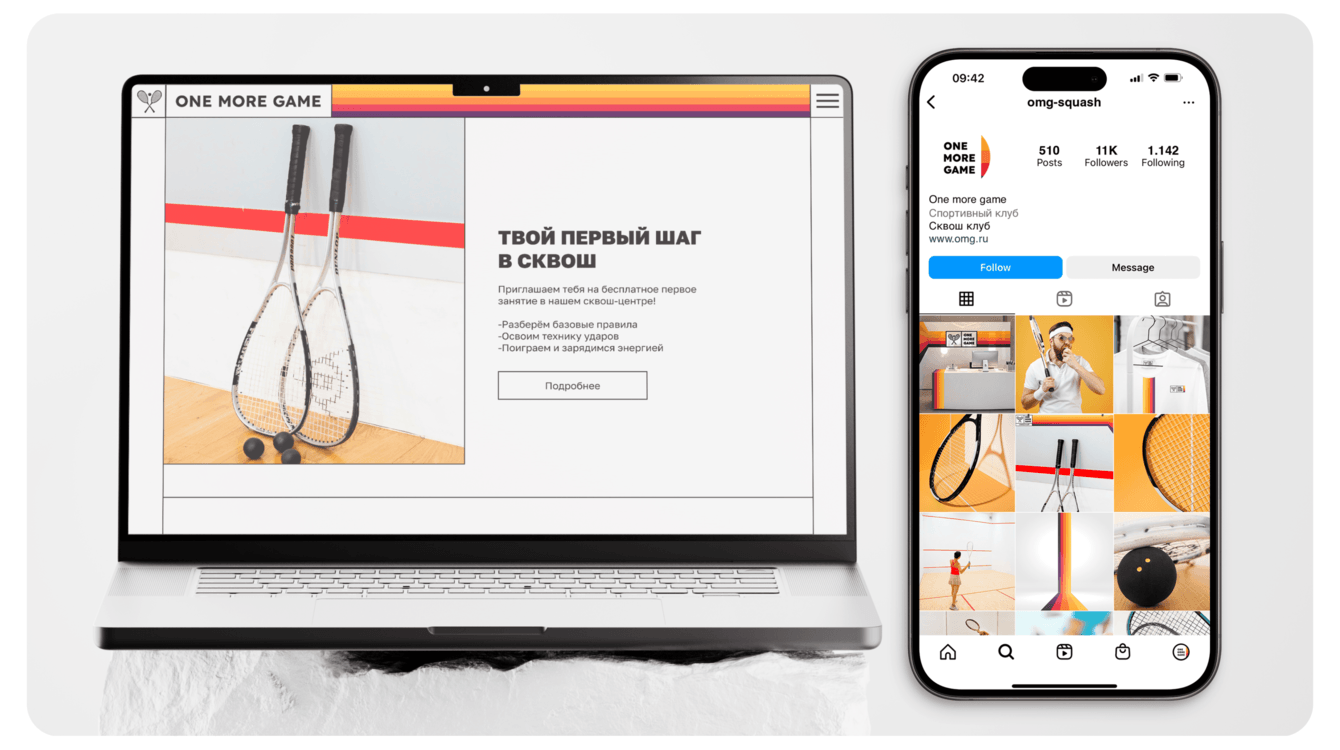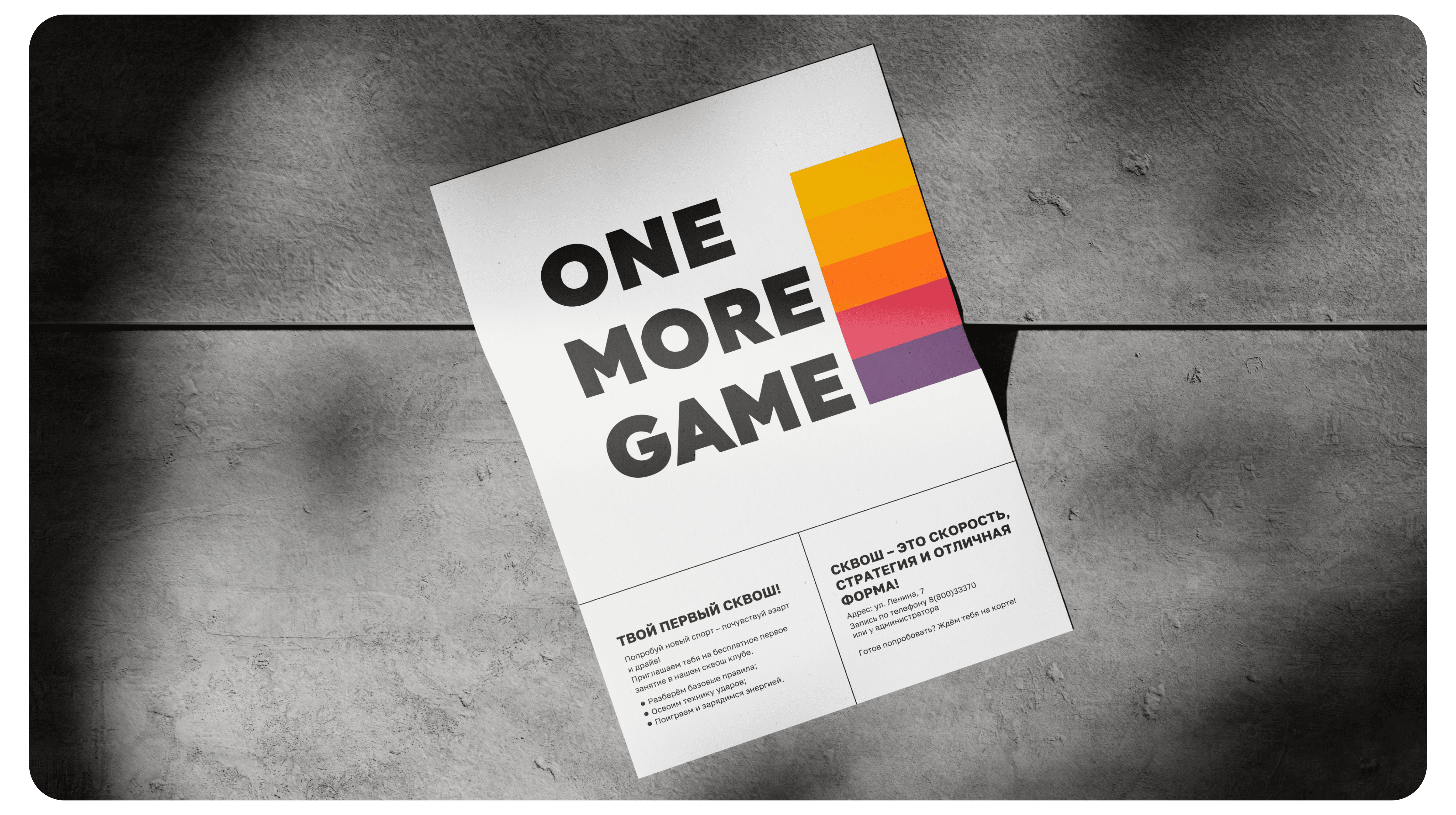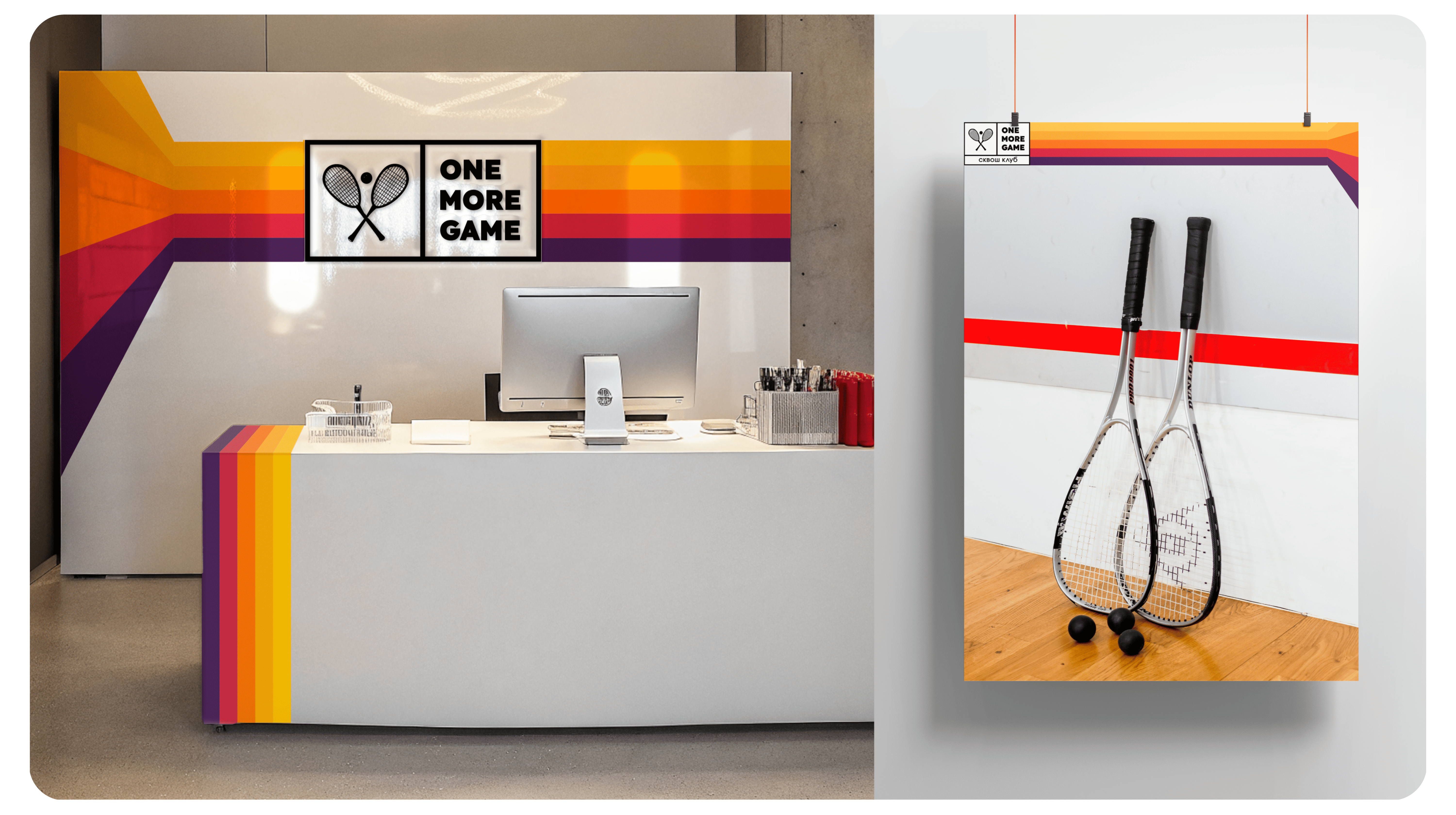 Разработка логотипа и фирменного стиля для сквош-клуба ONE MORE GAME