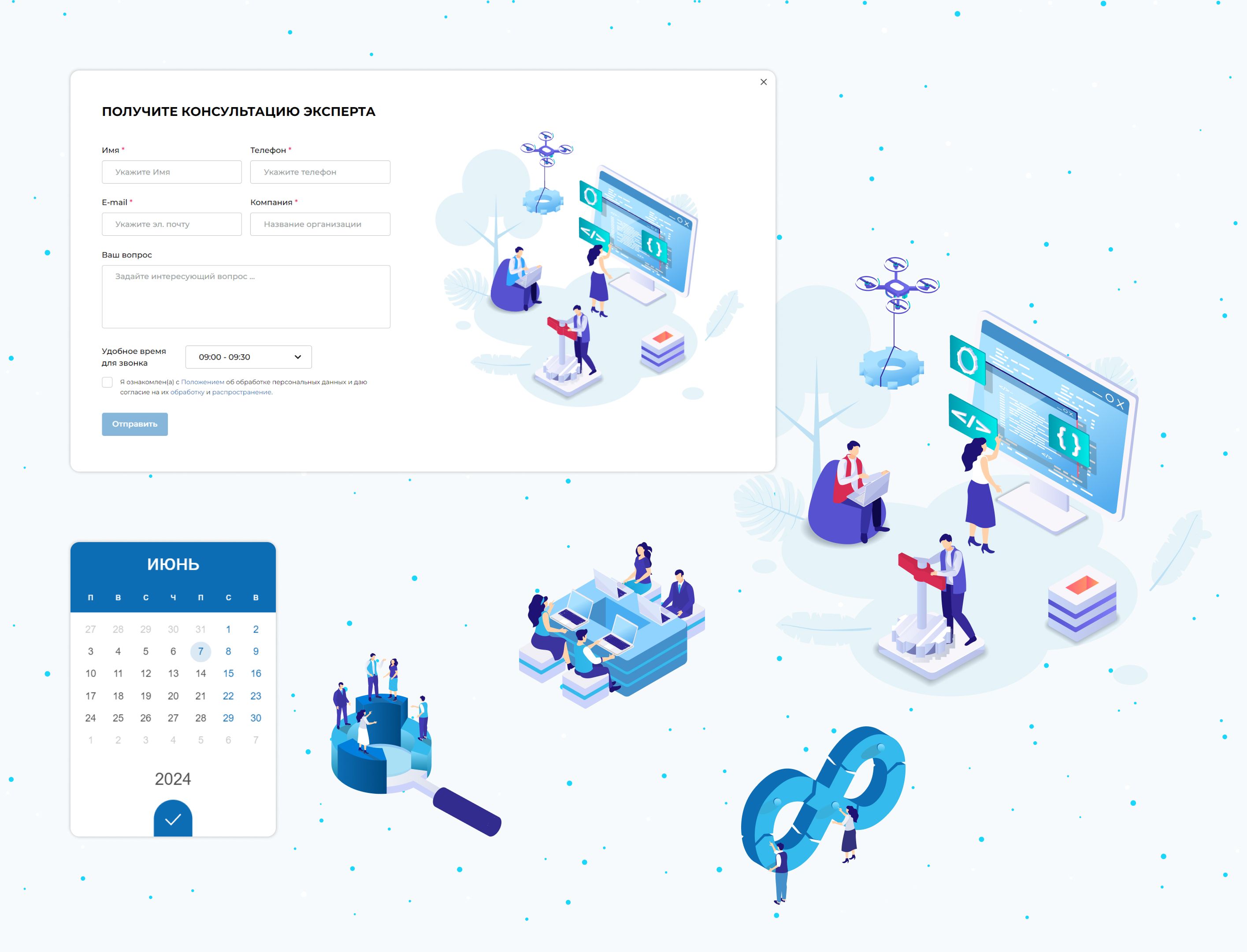 Создан современный и профессиональный дизайн, отражающий технологичность и expertise компании.