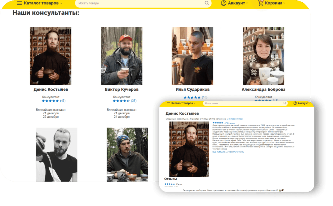 4. Детальная страница консультантов.