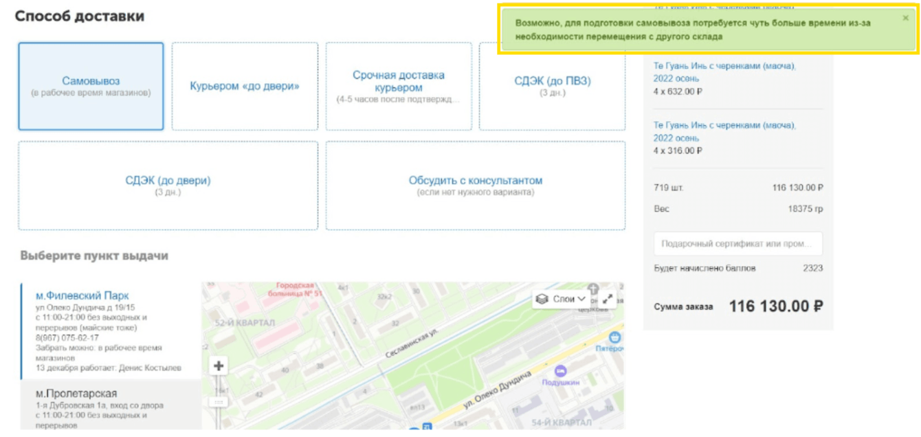 3. Наличие товара по определенному адресу
