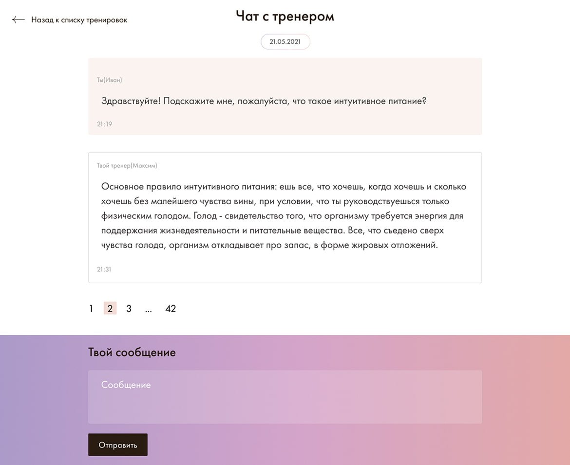 - Отдельные виды тренировок по типу пользователя