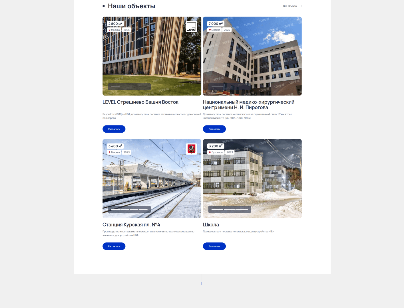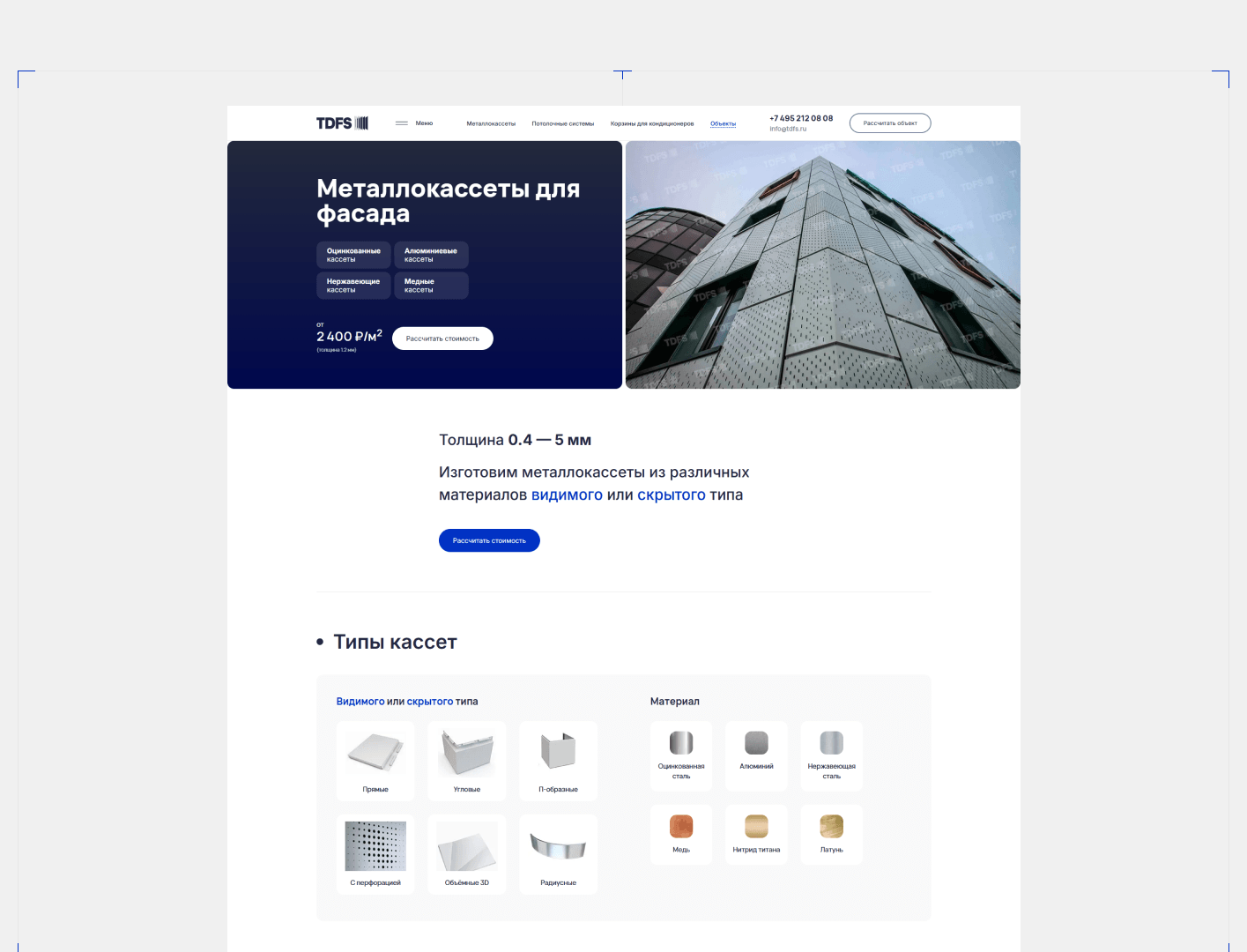 Разработать онлайн-каталог для компании «TDFS», специализирующейся на производстве навесных фасадных систем и отделочных материалов из металла. Каталог должен был представить продукцию компании, её услуги и обеспечить удобство взаимодействия для потенциальных клиентов.