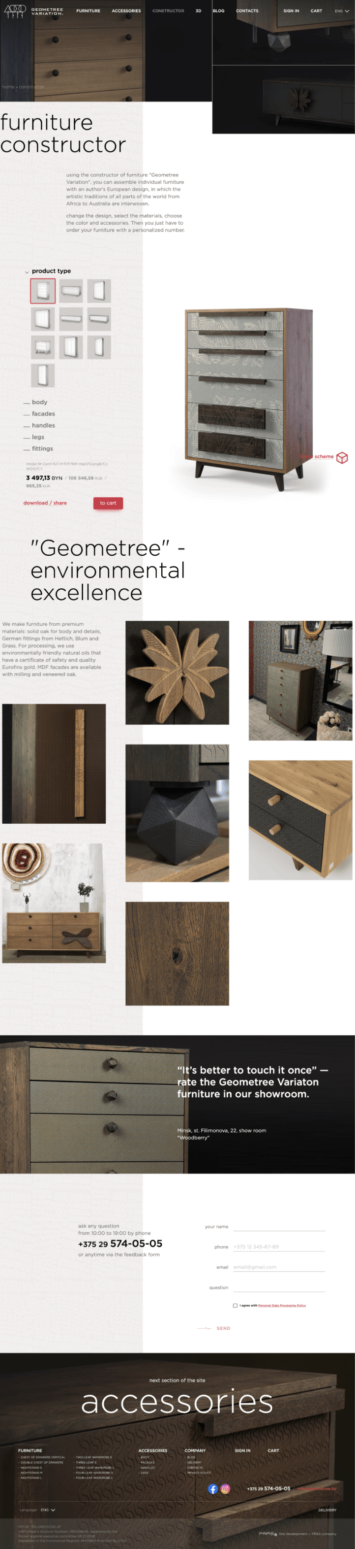 Проект Geometree Variation задуман создателями как конструктор мебели из деталей от профессиональных дизайнеров. Компания PRAS разработала web-площадку, которая помогает разобраться в сути проекта и самостоятельно собрать оригинальный предмет для дома онлайн.