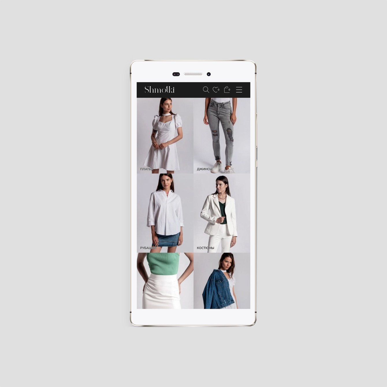 “Shmotki” — магазин женской одежды в стиле casual. Исходя из интервью, мы сформировали позиционирование бренда: современность, доступность и качество. Нашей задачей было создать минималистичный визуал и сделать процесс онлайн - шоппинга комфортным.