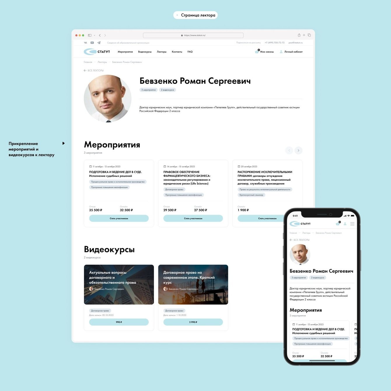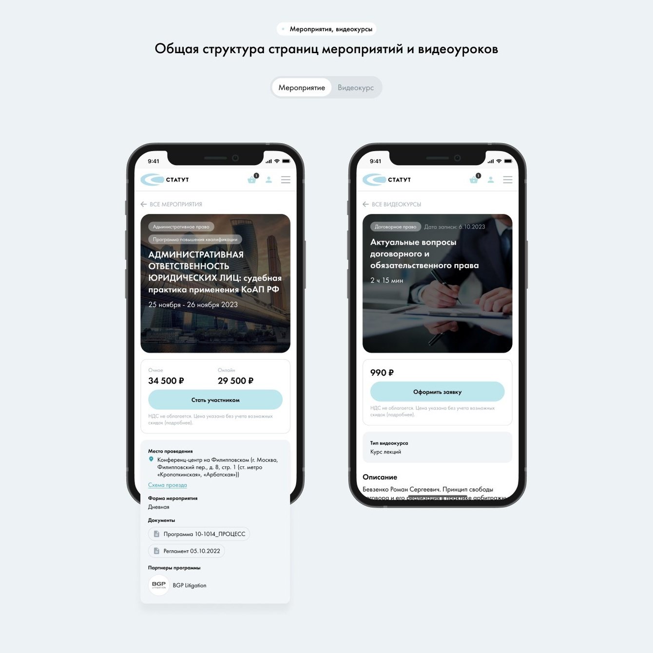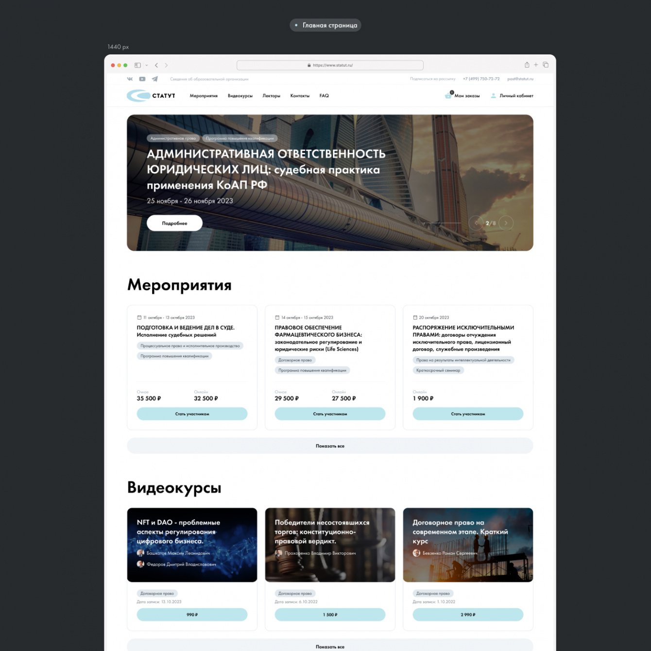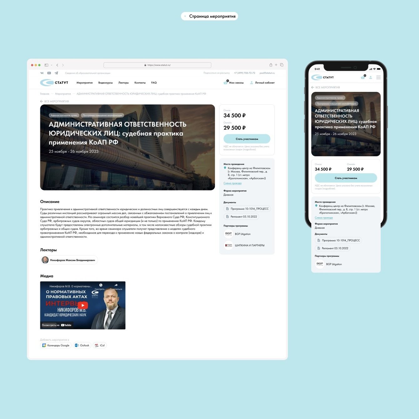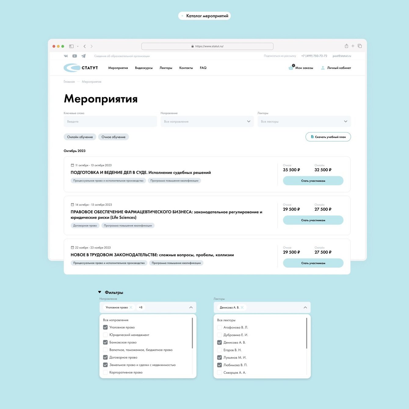 Разработать портал по проведению краткосрочных очных и онлайн курсов повышения квалификации для юристов.