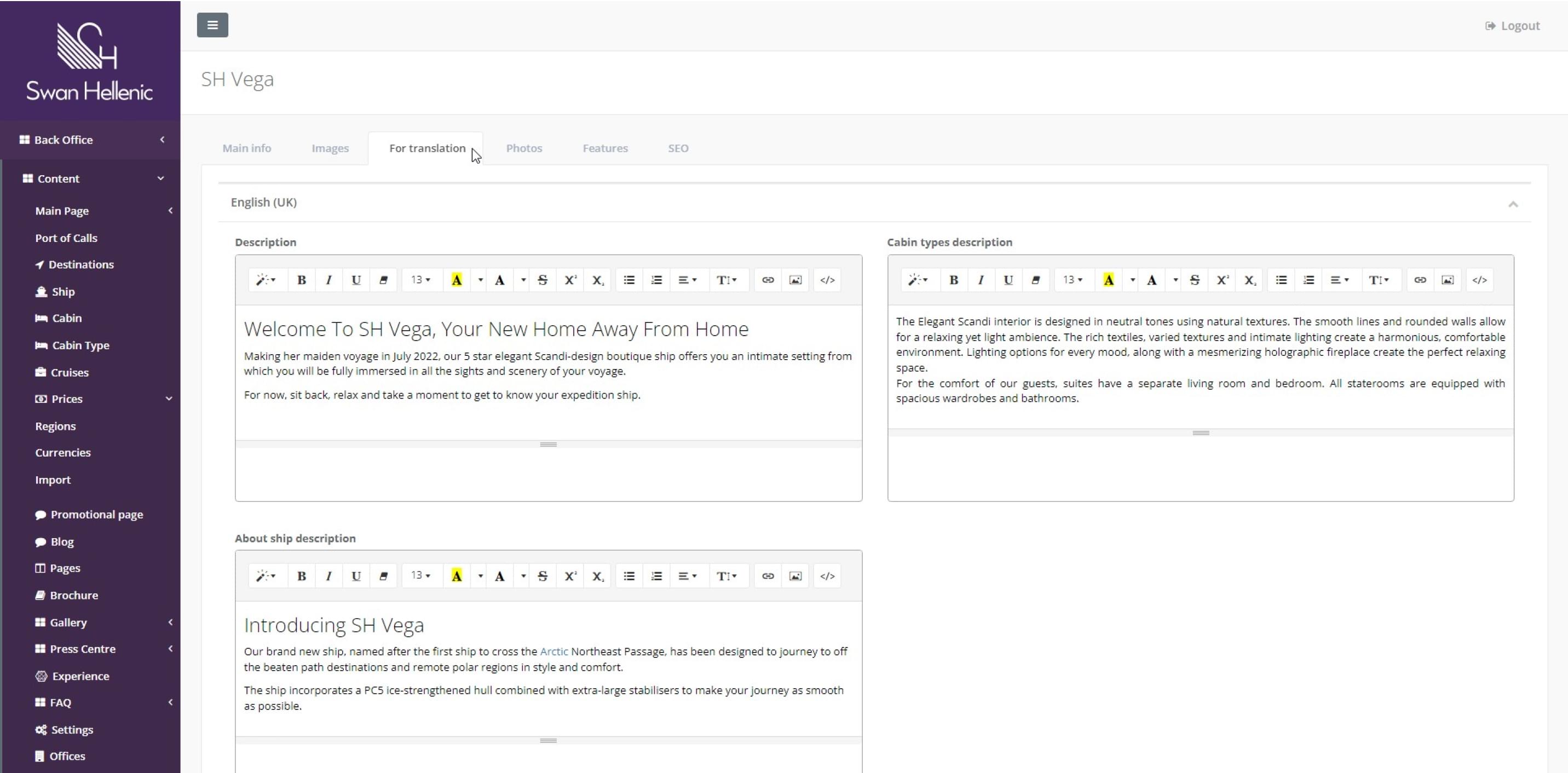 Целевой аудиторией компании являются путешественники со всего мира, поэтому крайне важно было сделать сайт удобным и понятным для пользователей из разных частей планеты. Это требование сильно повлияло на архитектуру проекта и дизайн административной части сайта. Функционал для перевода контента должен быть удобным и понятным, а получение контента на сайте должно работать быстро. Также важно было учесть, что контент на различных языках может нарушать верстку сайта. Для дополнительного управления переводами мы интегрировали сервис Weblate, который позволяет подключить к процессу перевода сторонних подрядчиков.