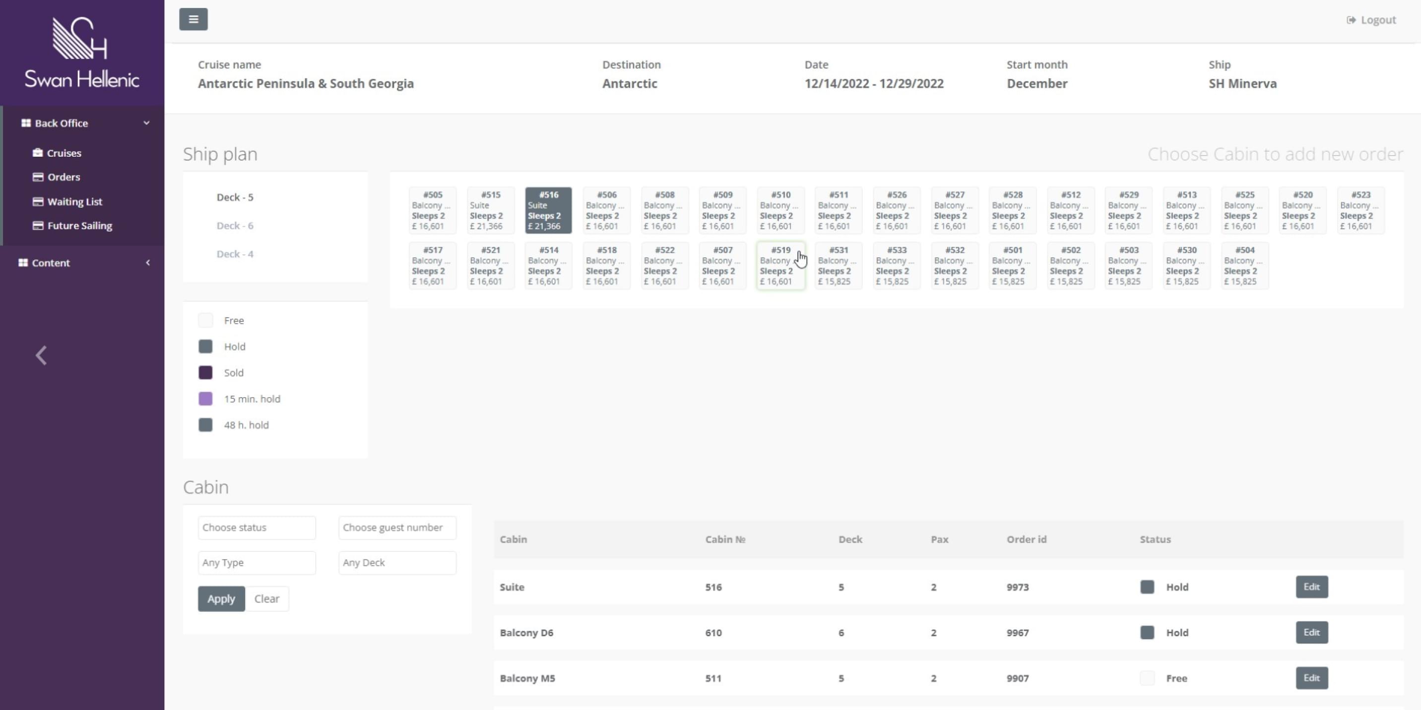 ﹥ Гибко управлять круизной базой и каютным фондом.