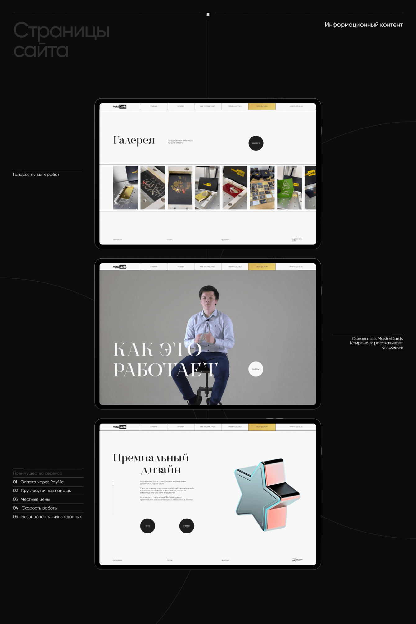 Особого внимания заслуживает раздел "Как это работает". Мы решили сделать ход на опережение и разработали сценарий для видеоролика, в котором Камронбек Осимжонов — автор проекта — рассказывал о сервисе и показывал металлические карты. Мы прописали композицию и положение Камронбека так, чтобы один ролик одинаково хорошо смотрелся и на мониторах ноутбуков (16:9), и на смартфонах (9:16), поэтому клиенту не потребовалось снимать и монтировать дополнительное видео.