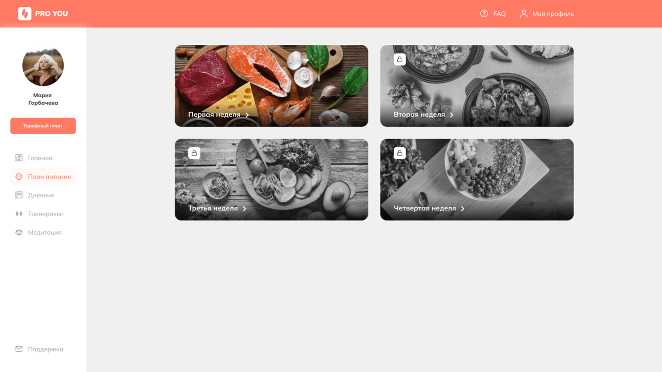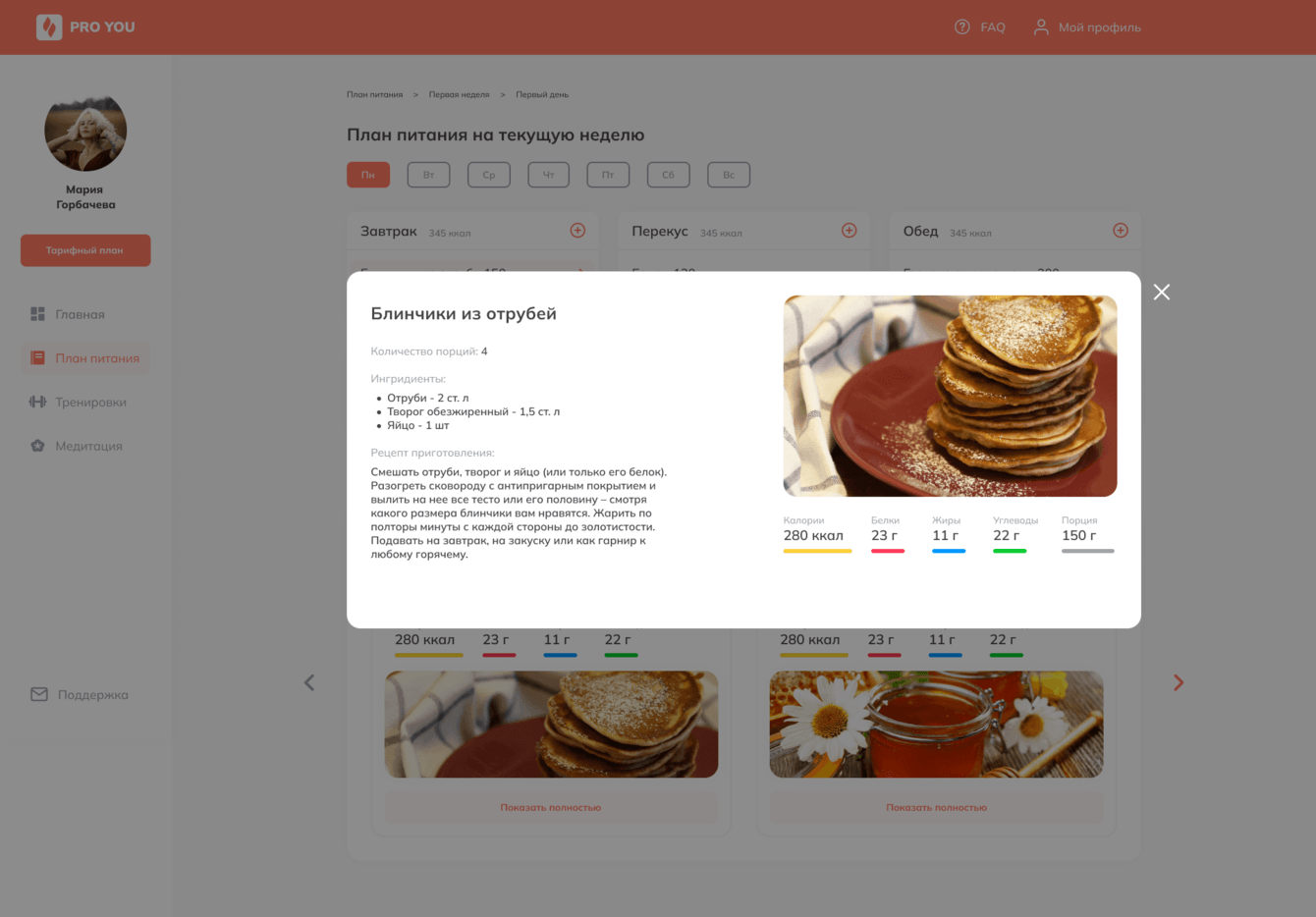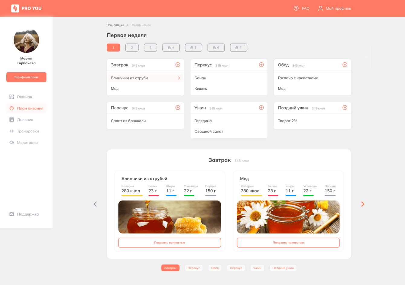 Заказчик поставил задачу разработать онлайн сервис по подбору плана питания. А основу проекта легла специально разработанная методология по питанию от самого заказчика.