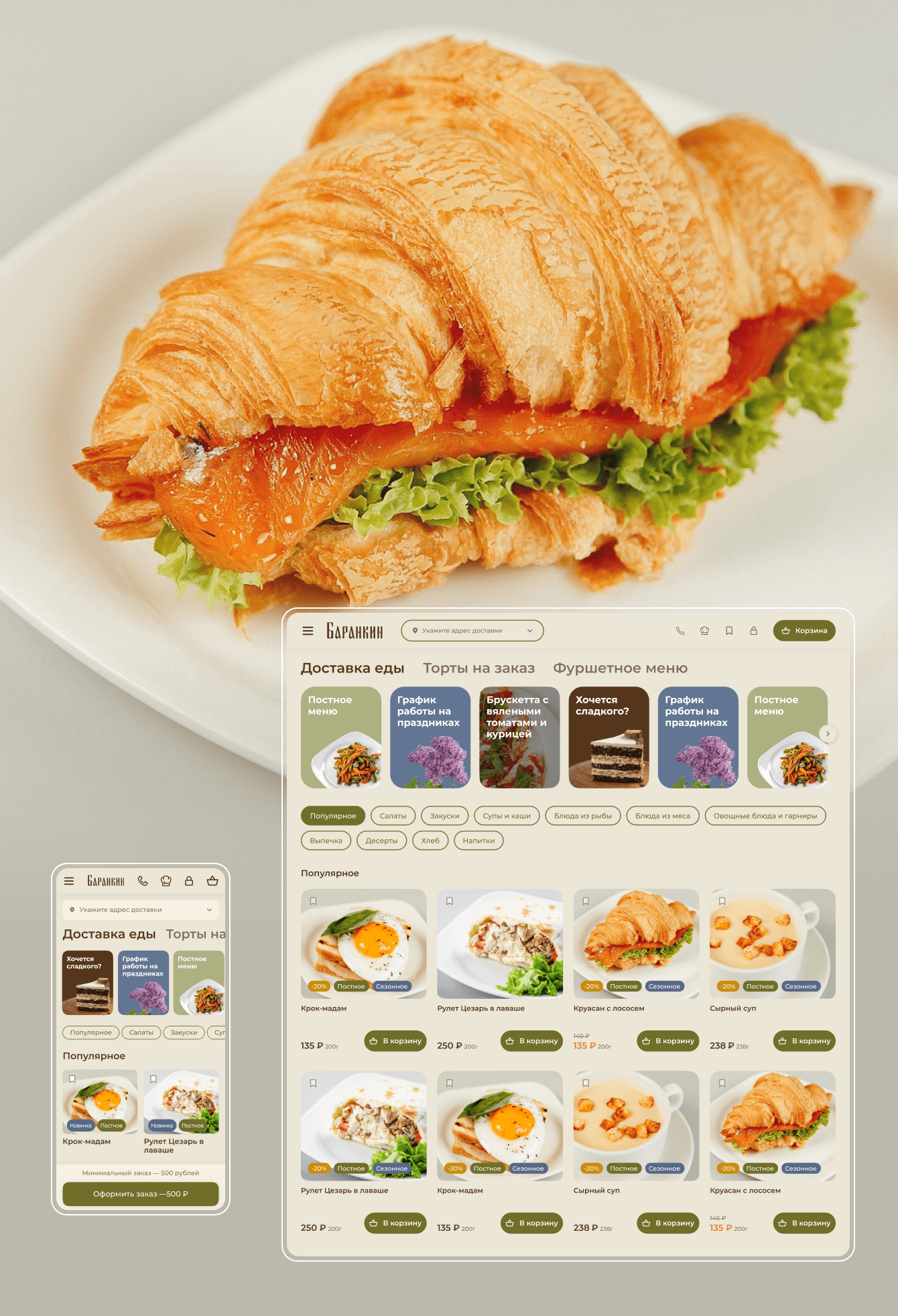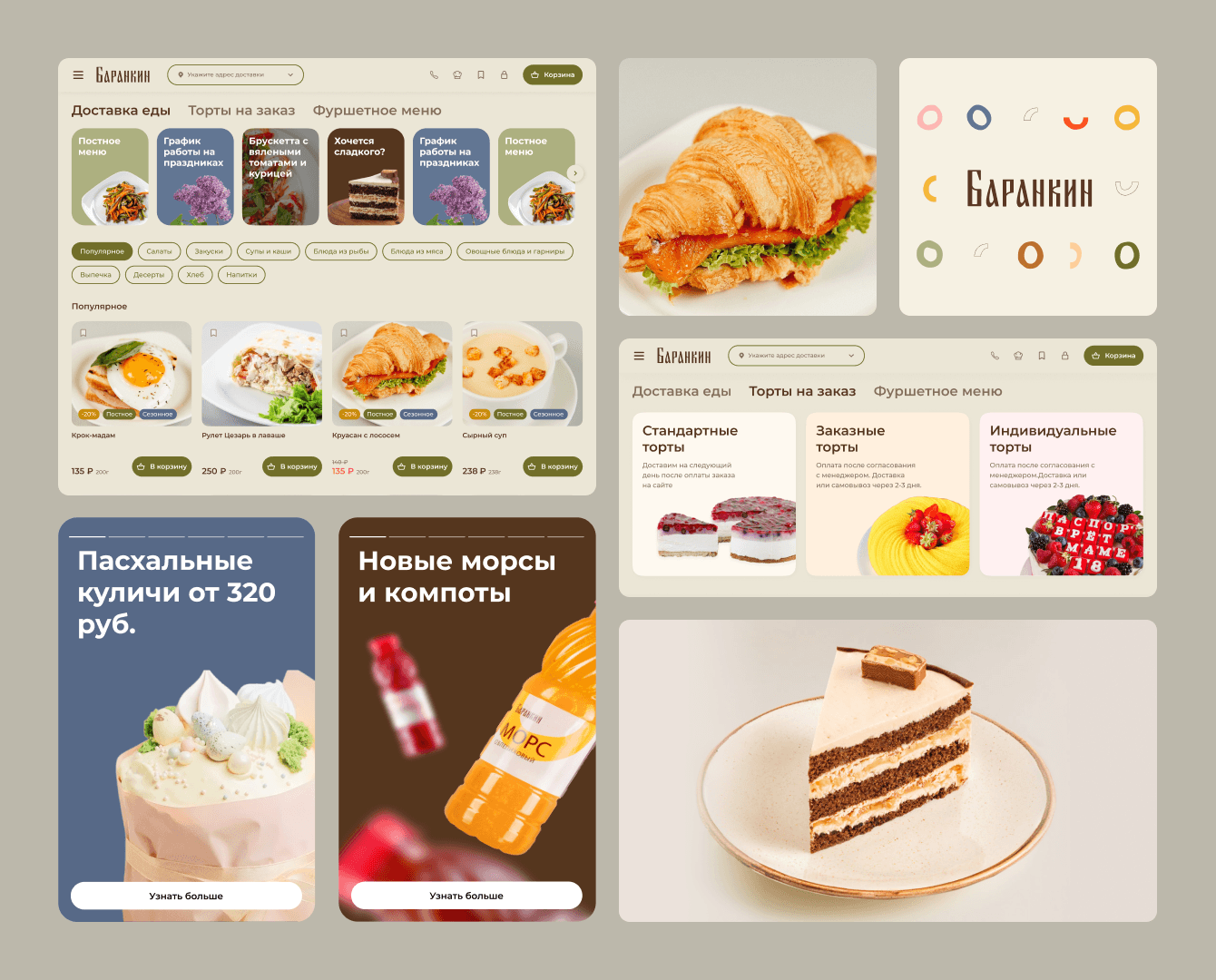 У кулинарии есть собственный онлайн-сервис для продажи готовой еды и десертов. Каждый месяц покупатели совершают около 1200 онлайн-заказов на сайте «Баранкин». Средний чек таких покупок — около 1600 рублей. Такие заявки дают больше прибыли, в отличие от заказов с агрегаторов.