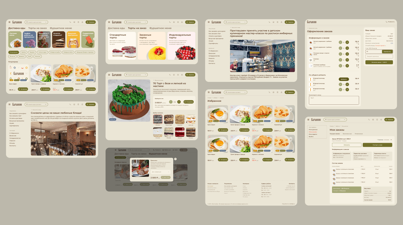 В общей сложности подготовили по 20 макетов для отображения на ПК и других устройствах. Это стартовая, каталоги продукции, о компании, доставка и оплата, акции, личный кабинет и другие. Детально проработали мобильную версию, так как 75% трафика на «Баранкин» идёт со смартфонов и пользователям должно быть удобно оформлять заказ пальцем и не промахиваться.
