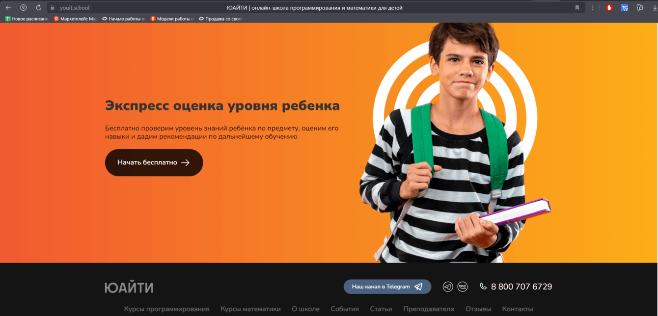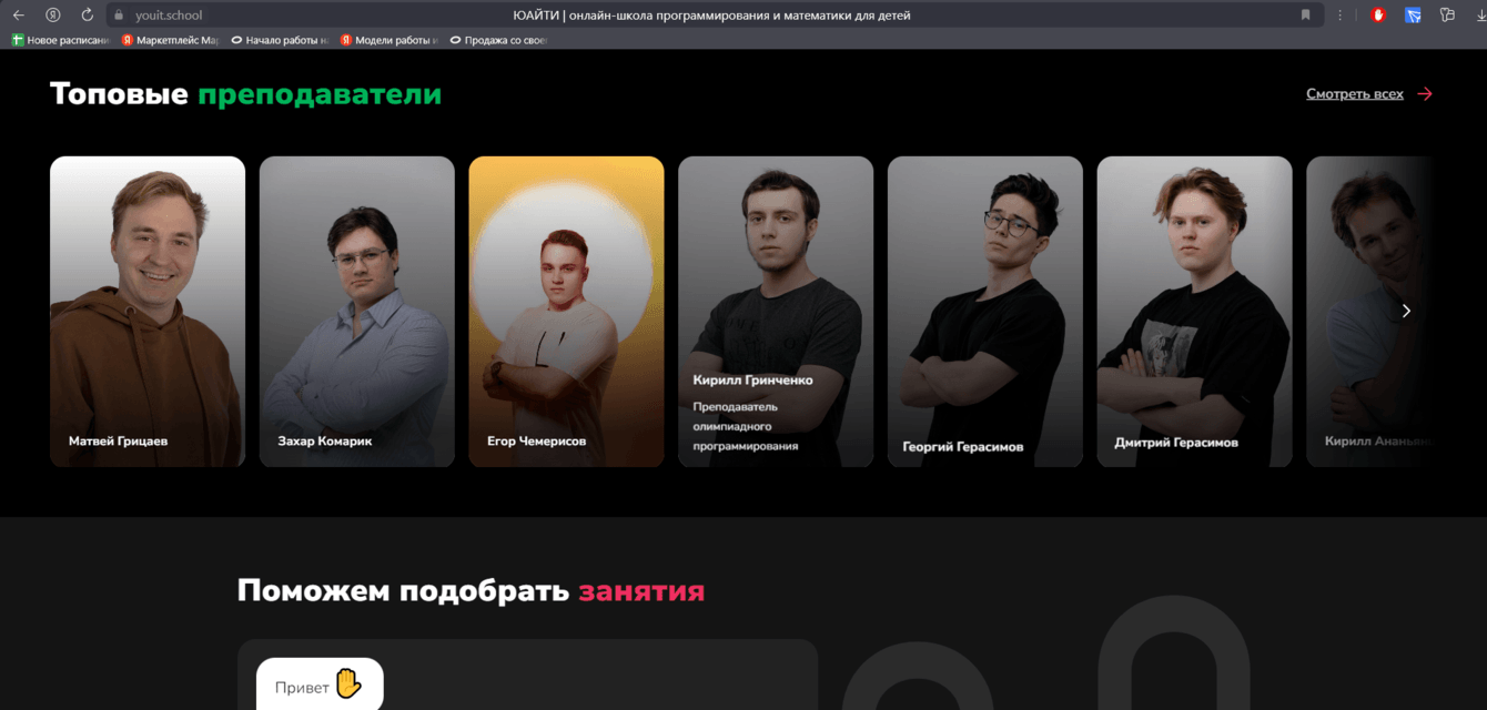 В результате получился продающий, удобный многостраничный веб-сайт, реализована автоматизированная бухгалтерия в Google таблицах, напоминания о занятиях и ученику и учителю, внедрено AmoCRM с телефонией