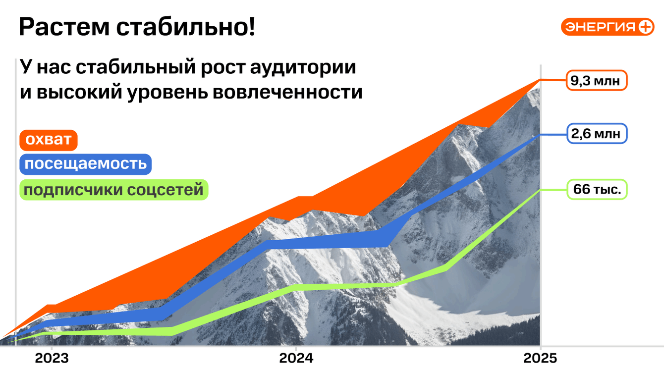 Проект помогает узнавать новые факты о глобальной энергетике, рассказывает о трендах развития науки, а также дает полезные советы по осознанному потреблению энергии дома, на транспорте и в разных видах бизнеса. «Энергия+» рассказывает о научных открытиях в области энергетики в России и мире, публикует обзоры научных гипотез и исследований в сфере энергетики будущего, знакомит читателей с энергоэффективными технологиями, помогает разобраться в физических законах и явлениях природы, освещает главные энергетические мероприятия России.