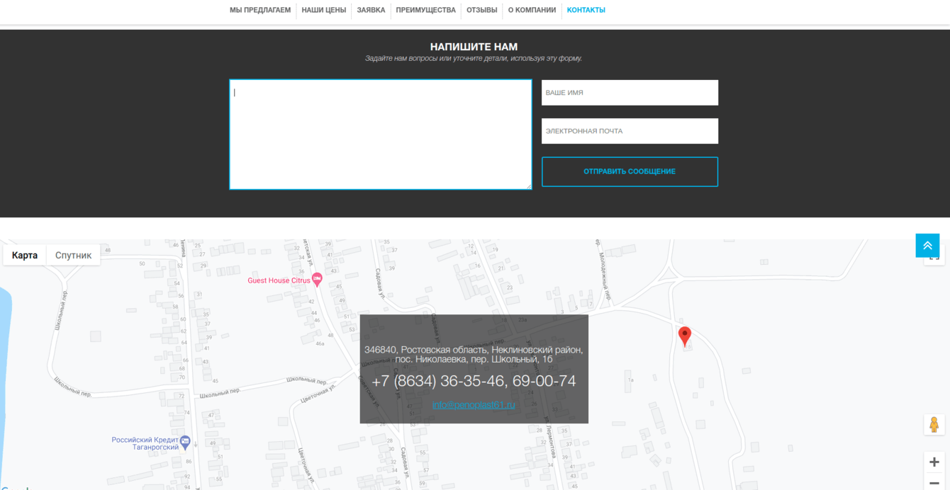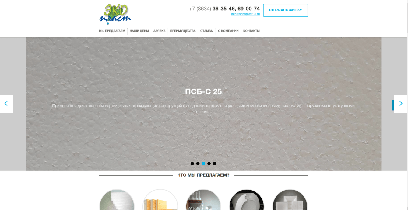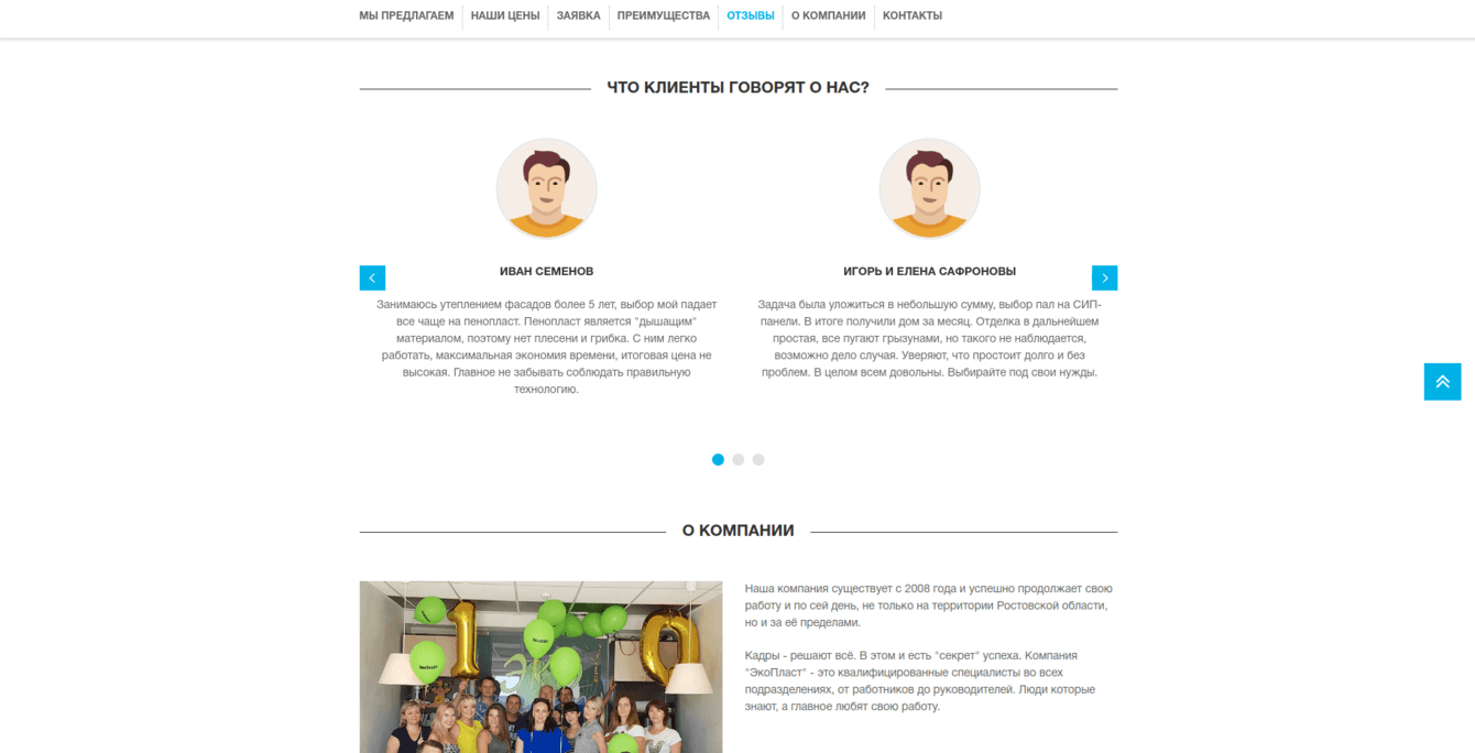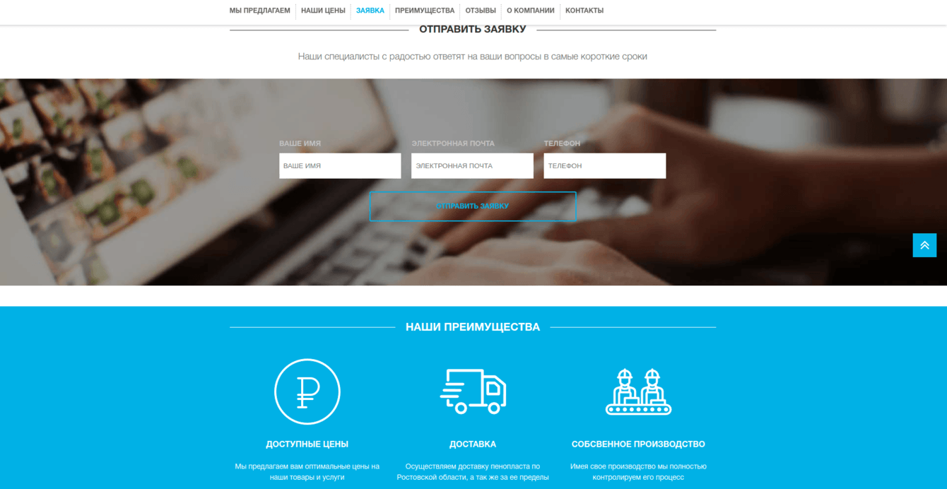 Разработали главную страницу компании со всеми соответствующими разделами.