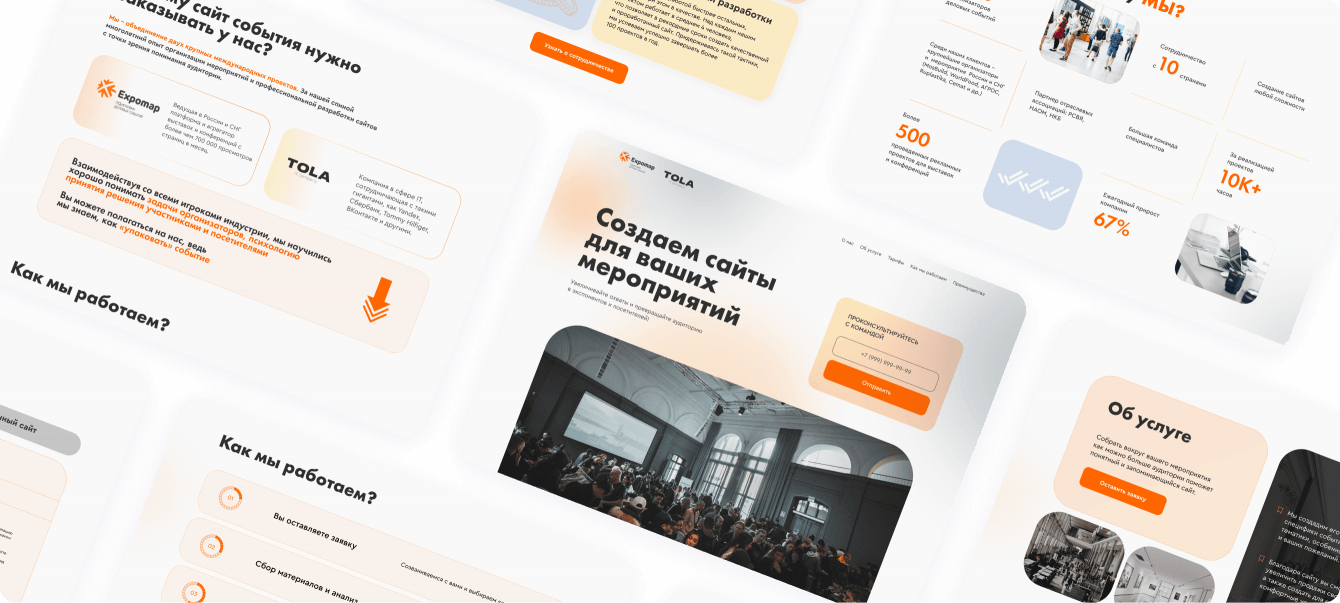 Задача - разработать лендинг для партнерства между компаниями Expomap и Tola, где мы предлагаем свои услуги по созданию сайтов для мероприятий. Главной целью этого лендинга является предоставление информации и привлечение потенциальных клиентов, заинтересованных в разработке сайтов для выставок, конференций и онлайн-событий.