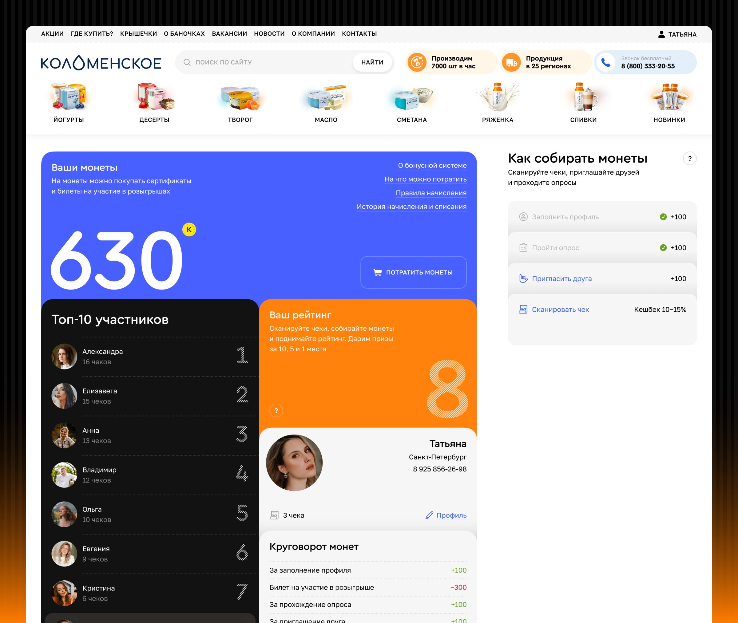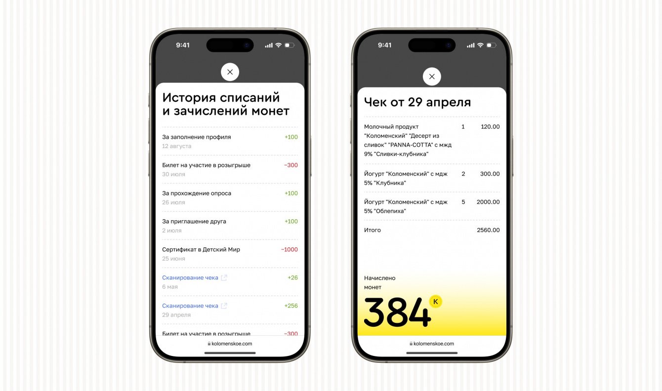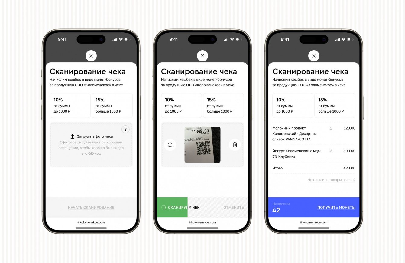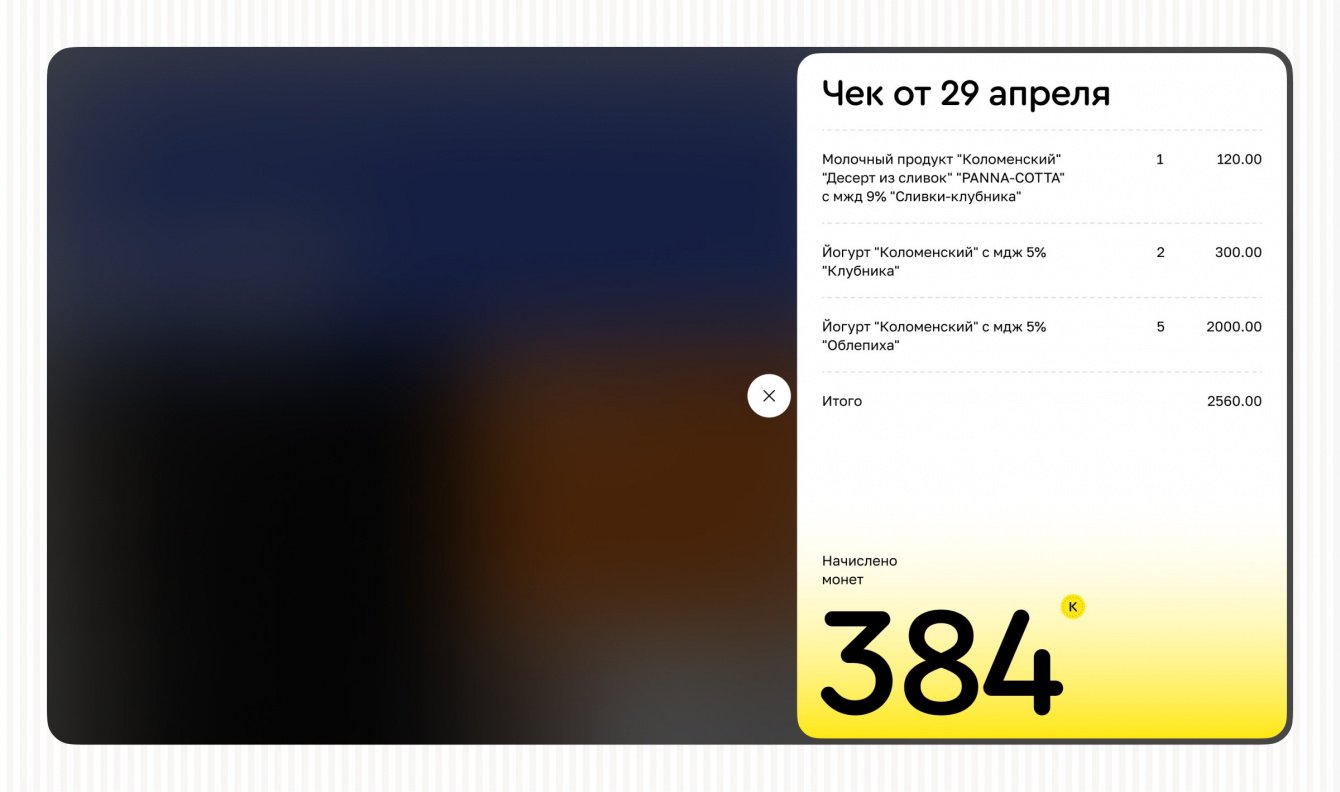 Разработали личный кабинет с возможностью начисления баллов за товары ООО «Коломенское». Пользователь фотографирует чек, система считывает из него только нужные товары и начисляет кэшбек ввиде баллов.