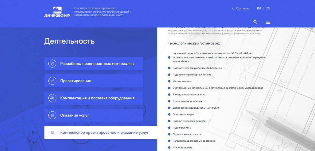 Разработка корпоративного сайта на 1С Битрикс в редакции "Стандарт" для компании ООО "Ленгипронефтехим"