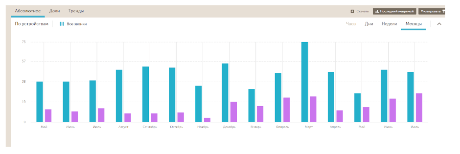 -С помощью отчета Calltouch по устройствам проанализировали мобильный трафик, что было важно в данном проекте - так как нужно было исключать обращения физических лиц.