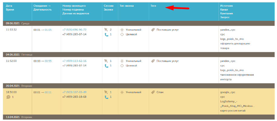 -В сервисе Calltouch прослушивали звонки и обрабатывали заявки, в тегах писали “целевой”, “некачественный”, “спам”, тем самым можно было отфильтровать по тегам, узнать источники некачественных обращений, и предпринять какое-нибудь решение по их устранению. Также в комментариях оставляли подробное описание звонка - какой груз и куда доставить, или причину попадания в некачественные