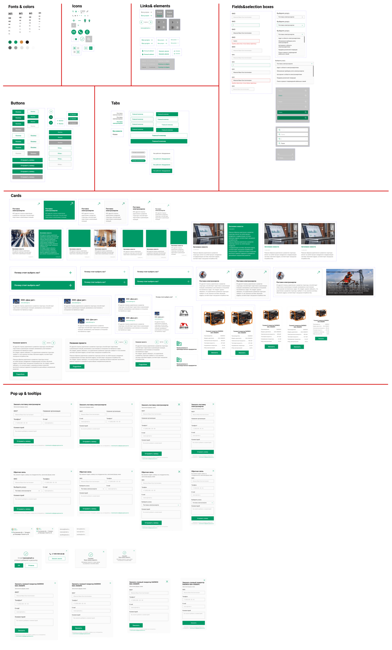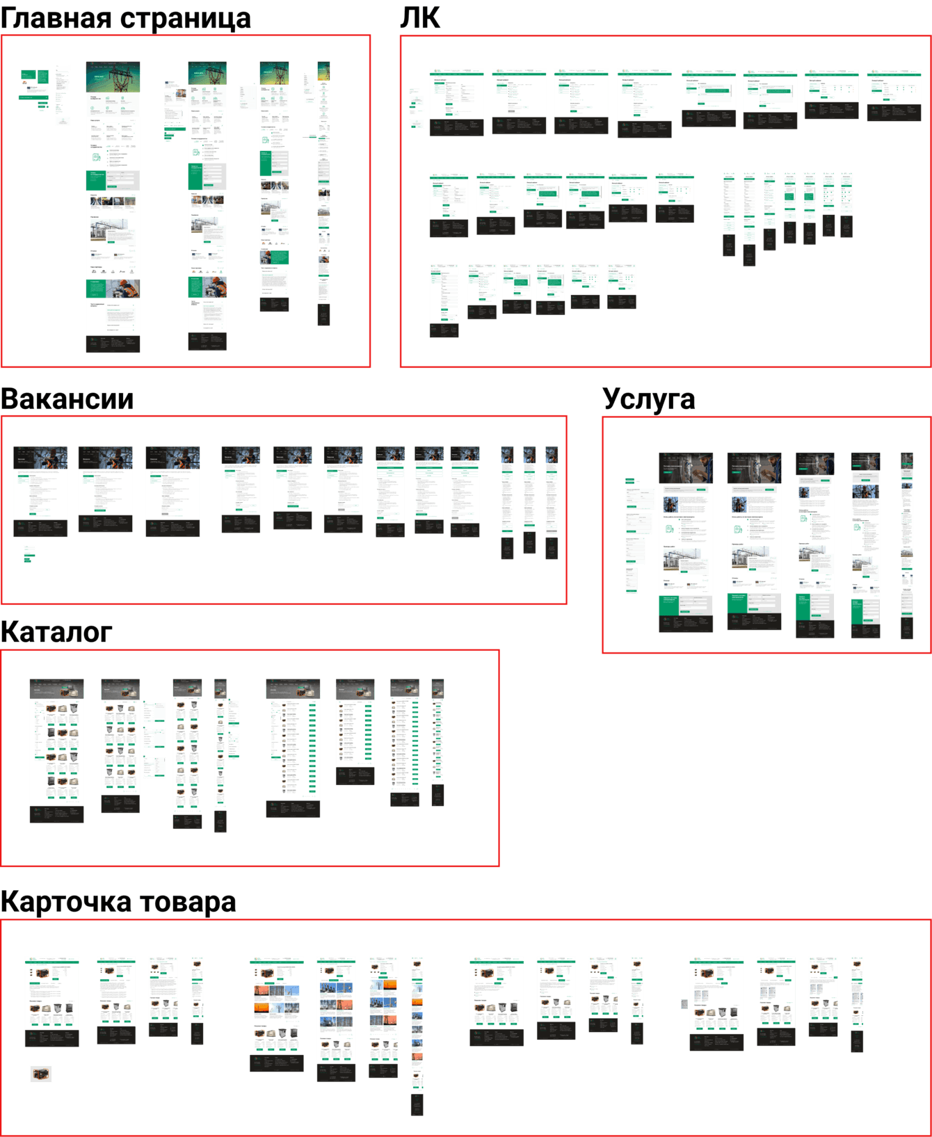 После того, как прототипы были разработаны и согласованы, мы приступаем к разработке дизайн-макетов страниц в figma, где наши прототипы приобретают цвета, различную анимацию и принимают вид страниц, которые увидят пользователи сайтов.