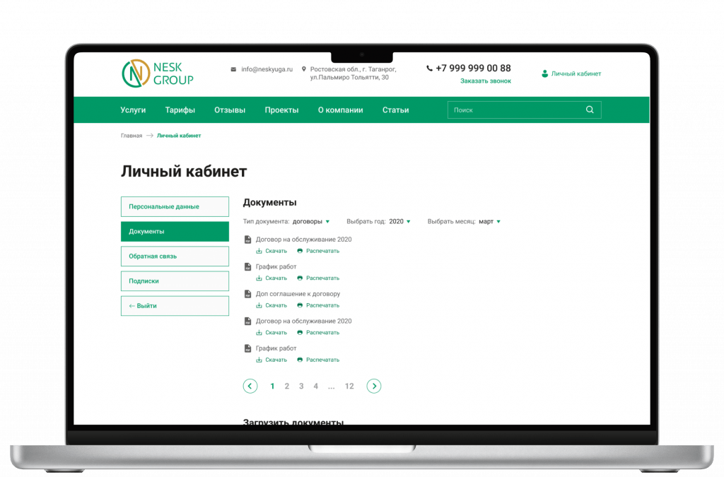 - сайт должен дать пользователям возможность пользоваться всеми услугами компании online и осуществлять все коммуникации с множеством специалистов НЭСК-ЮГА прямо из личного кабинета, без необходимости приезжать в офис.