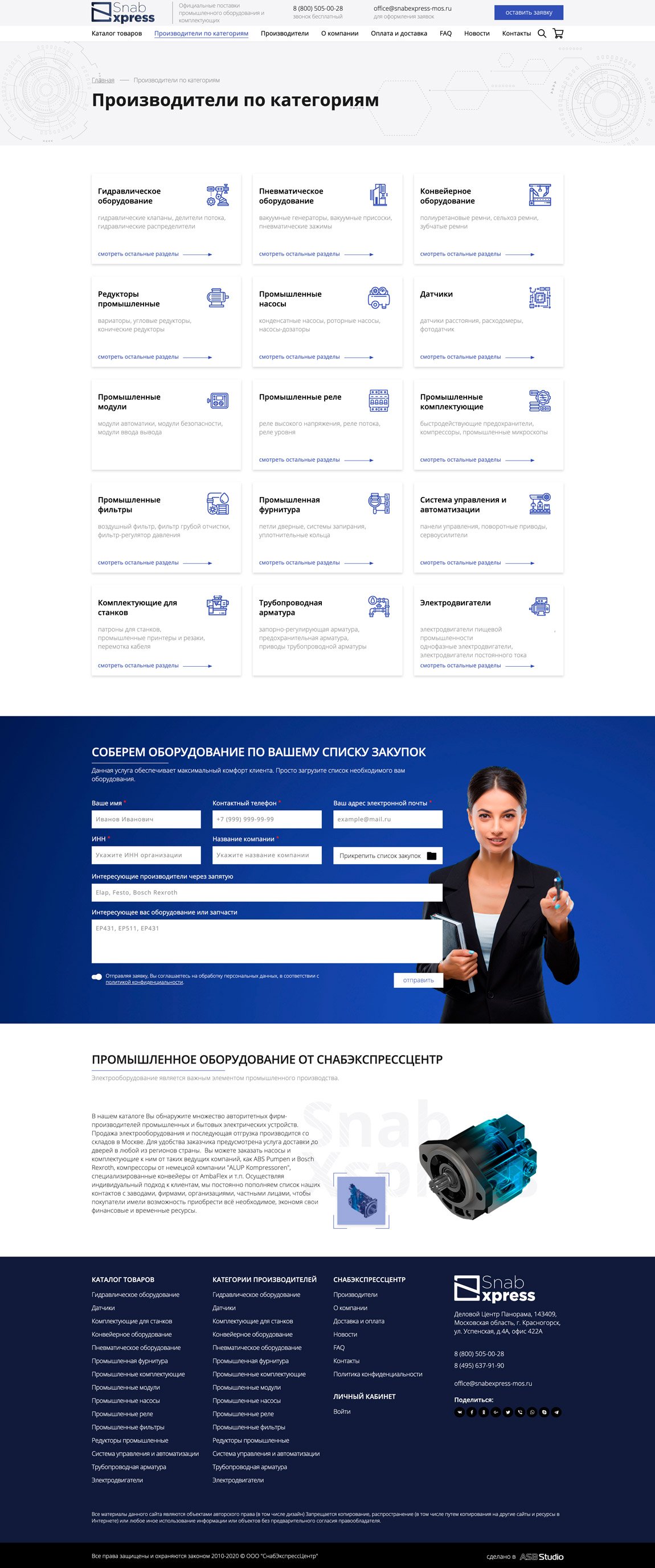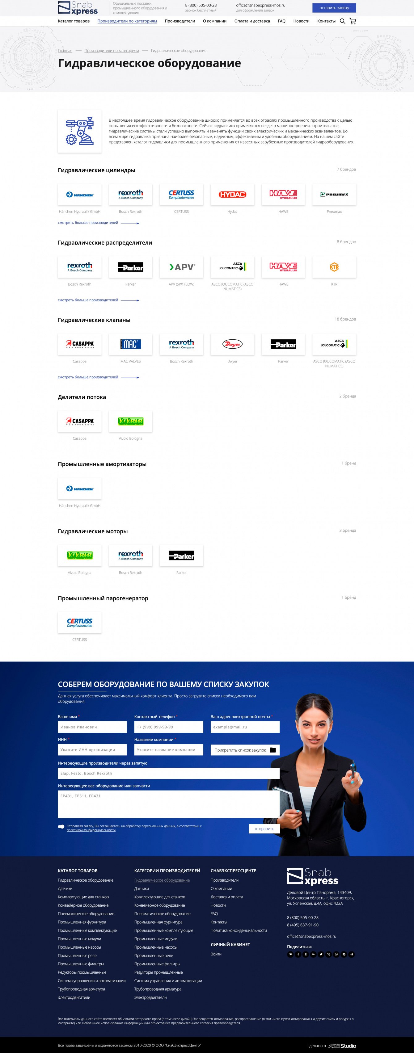 Разработать новый веб сайт с каталогом производителей комплектующих и промышленного оборудования. Так же предоставить посетителям веб сайта каталог товаров, в котором они смогут заказать промышленные комплектующие от Европейских производителей.
