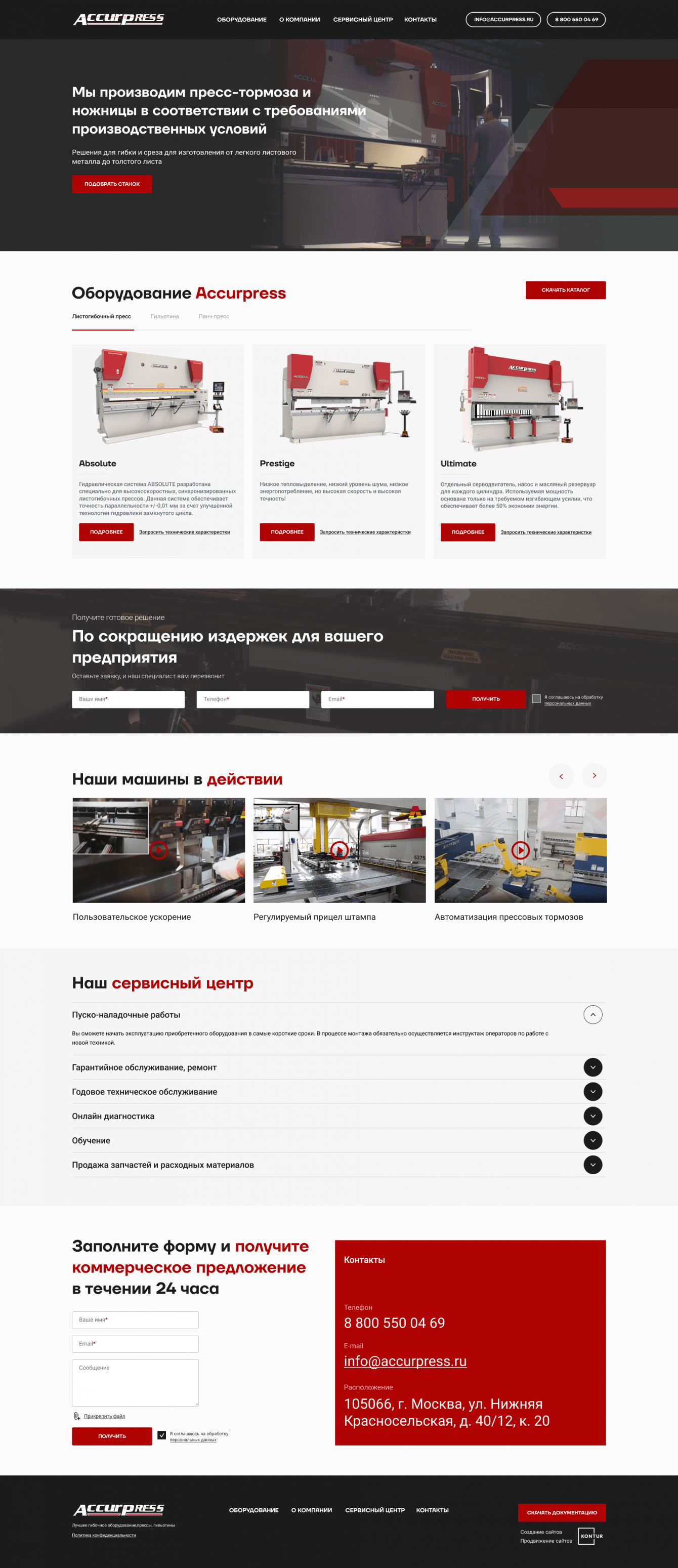 Разработка корпоративного сайта, который должен представлять товары бренда AccurPress и услуги сервисного центра.