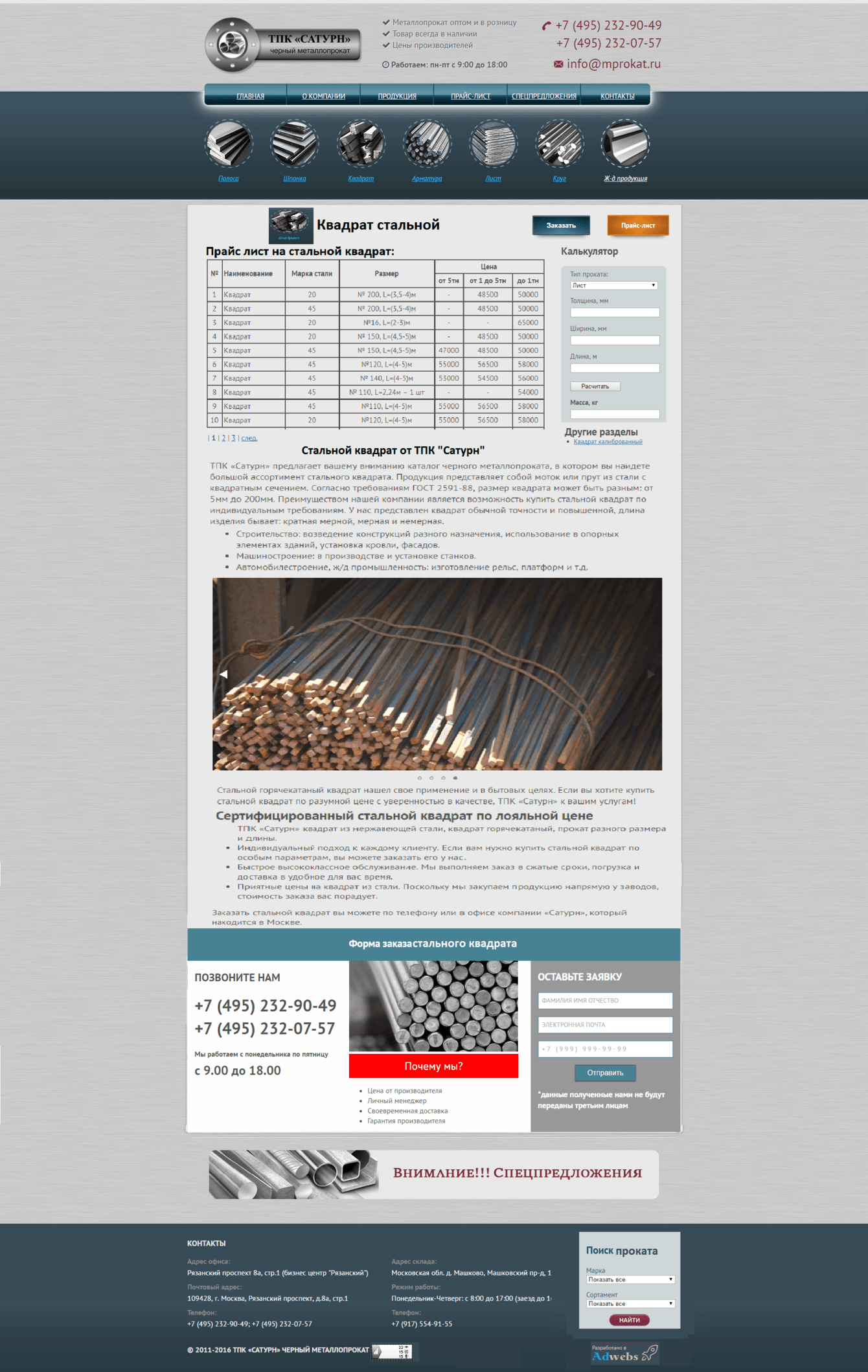 Были подобраны основные виды проката и размещена информация о всем ассортименте предлагаемом металлобазой