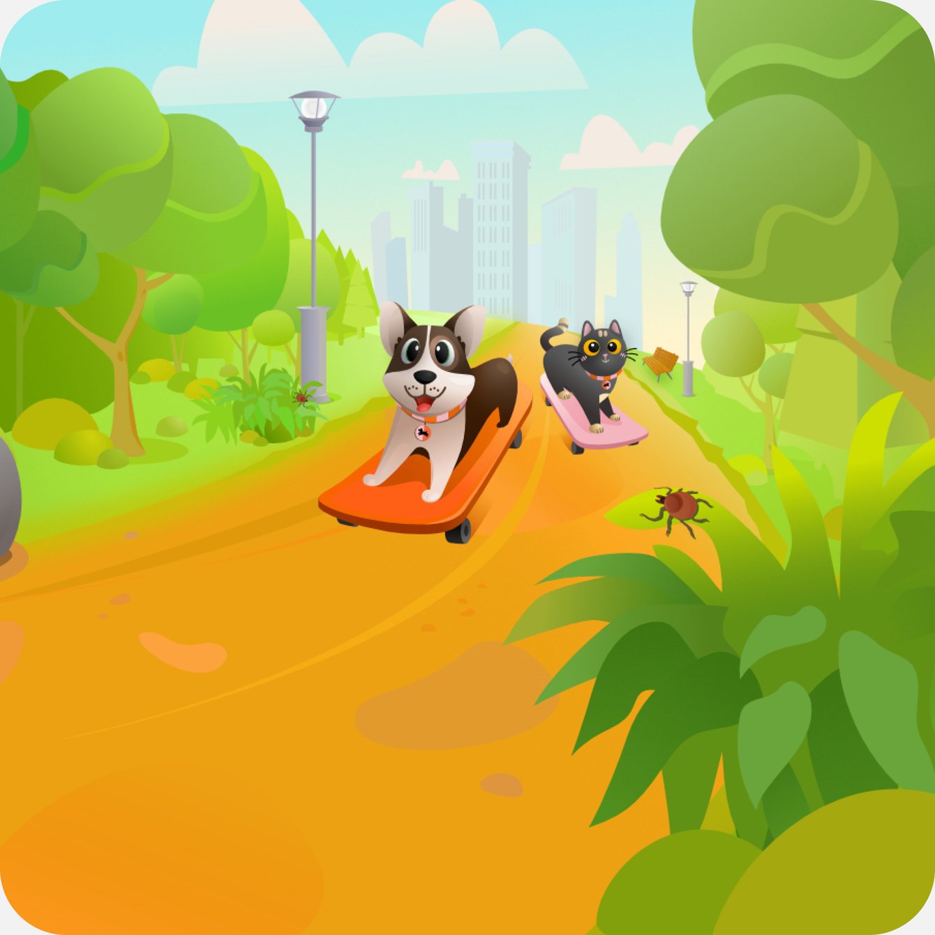 Задача пользователя — управлять котом или собакой, набирать как можно больше монеток, собирать бустеры и избегать препятствий. Необходимо избегать клещей, объедки на дороге и опасаться бродячих животных — они разносят блох. В игре, как и в жизни, паразиты приносят проблемы: столкновение с блохами замедлит питомца, с клещами — отнимет жизнь, если быстро не вылечиться, а глисты затруднят управление.