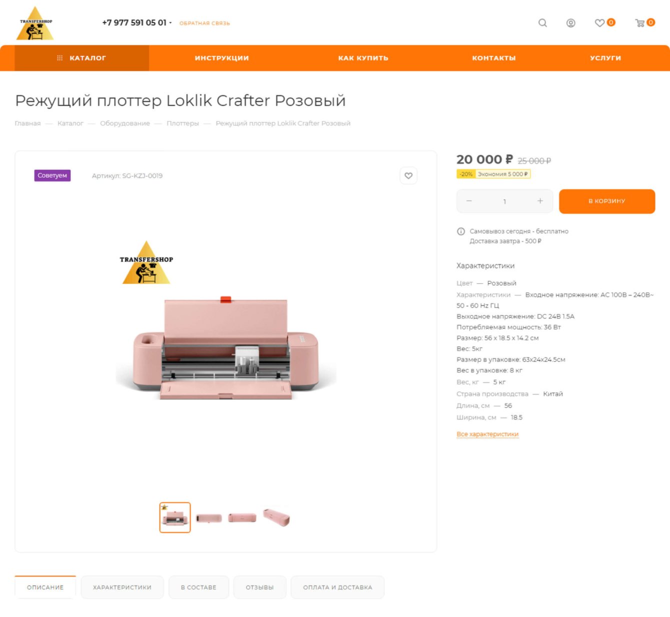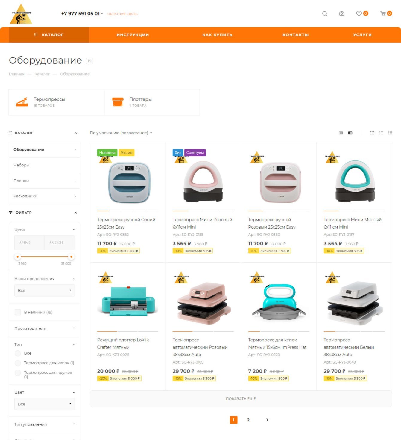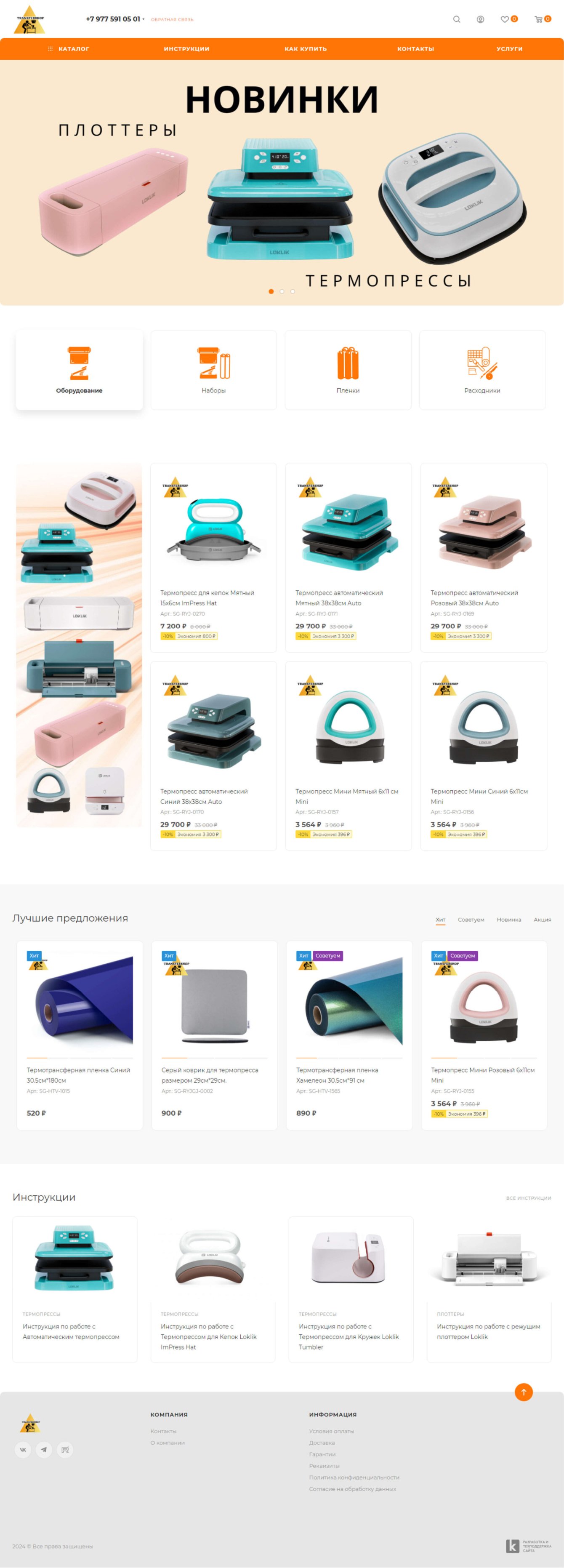 - Разработан сайт, как дополнительный источник продаж термопрессов и плоттеров, а также аксессуаров для творчества