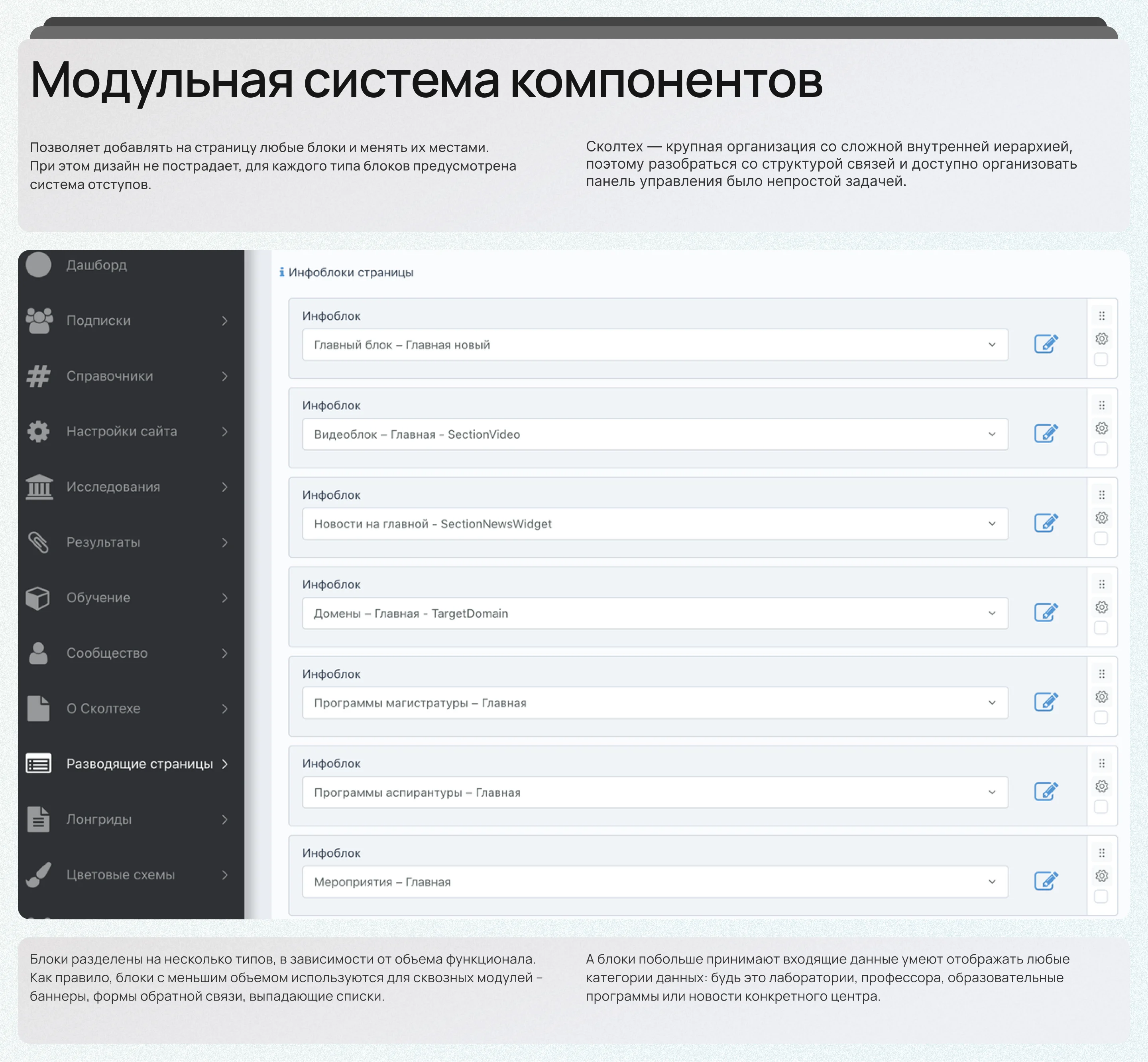 ➕ Разработать независимые модули компонентов, чтобы администраторы могли самостоятельно собирать страницы в соответствии с дизайн-системой